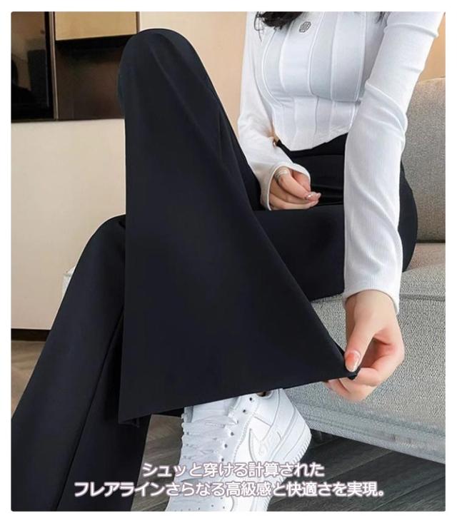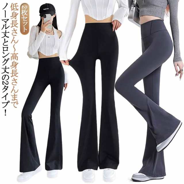 春夏 レギンス 2枚セット 脚長効果 フレア レギパン 春夏 パンツ レディース フレアパンツ 美脚 レギパ フレアレギパン ハイウエスト 長ズボン ボトムス 黒 ブラック 細見え スタイルアップ 暖かい 高身長 低身長