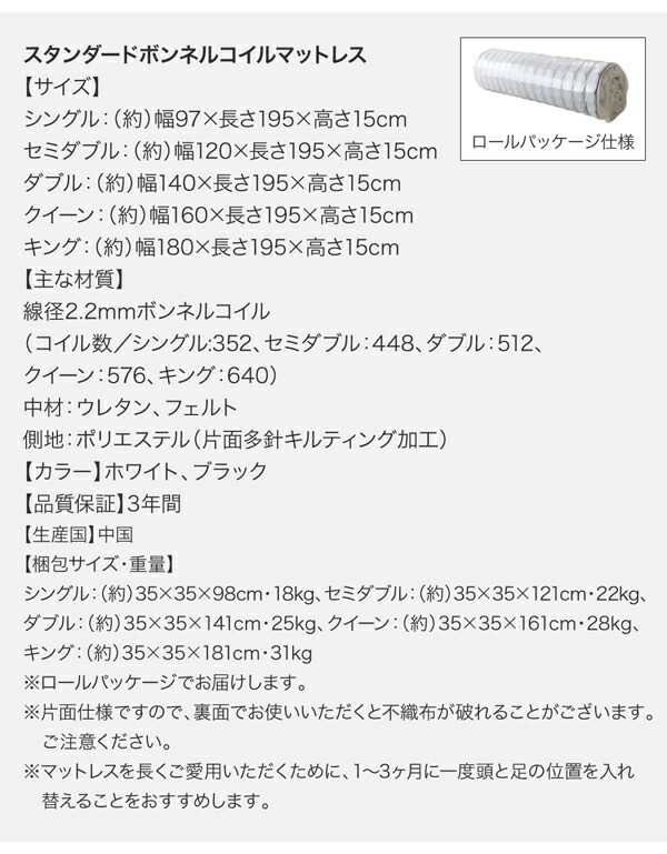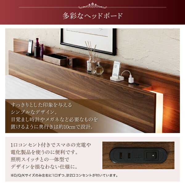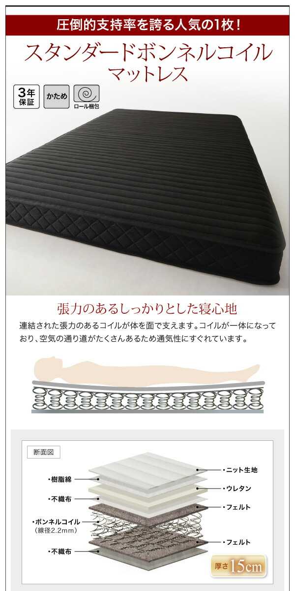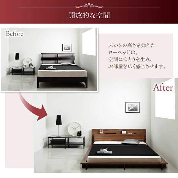 モダンライト・コンセント付き大型ローベッド ダブルサイズ ボンネルマットレス付き
