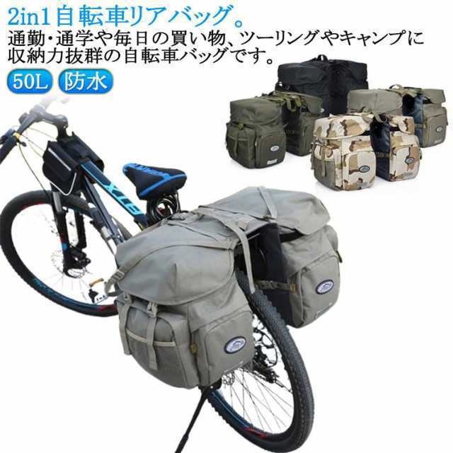 2 収納バッグ in 1 サイドバッグ リアバッグ 防水 2 50L 自転車 バッグ 大型 パニアバッグ 自転車用 サイクル バッグ キャリアバッグ 大容量 荷物収納 サイクリングバッグ カメラバッグ サイクリング ロードバイク