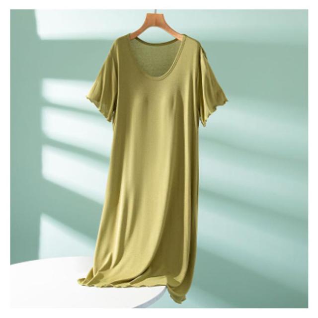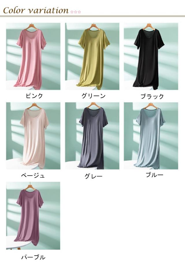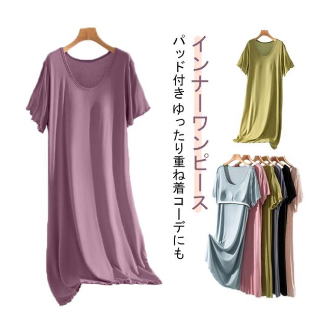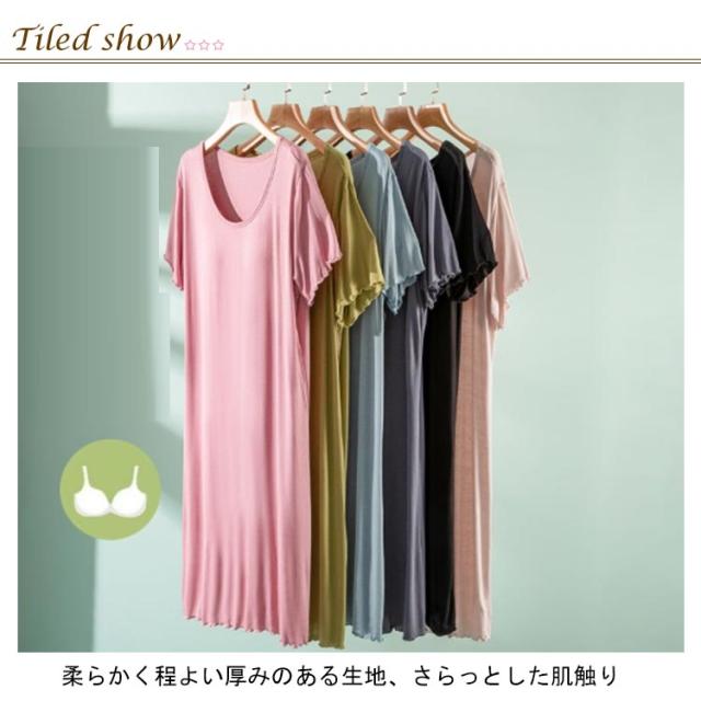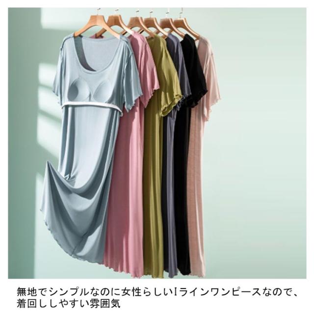 ワンピース ストレッチ カップ付き ルームウェア 体型カバー 通気性 部屋着 ロング丈 速乾 透けない レディース Aライン 大きいサイズ パジャマ ワンピ リラックス ワンピース ノーブラ 無地 春