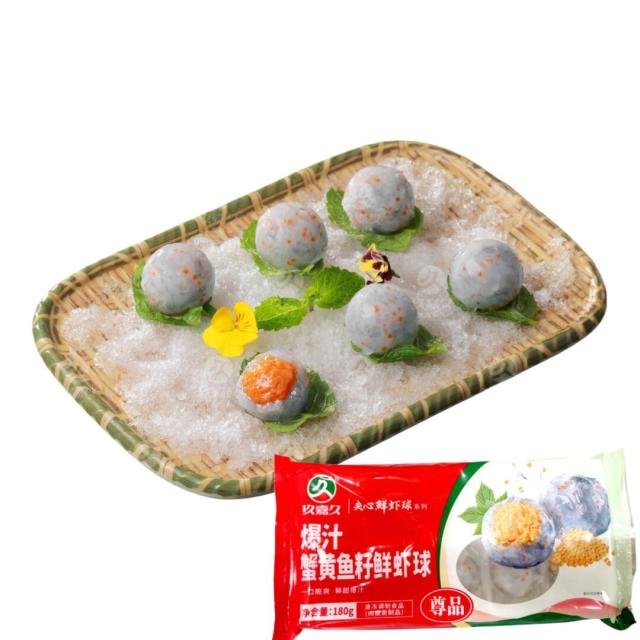 玖嘉久 爆汁蟹黄魚?鮮蝦球 魚卵えび団子 180g 冷凍食品 鮮蝦球 シャーフア エビ団子 えび団子 蝦球 エビ団子 火鍋 煮込み しゃぶしゃぶ 鍋 鍋料理 蟹黄魚?蝦球 蟹黄蝦球 魚?蝦球