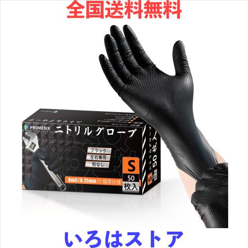 [PROMEDIX] ゴム手袋 8mil|0.25mm 極厚タイプ 強耐久性 使い捨て 作業用 ニトリル手袋 【食品衛生法適合品】 使い捨て手袋 耐油性 強伸縮