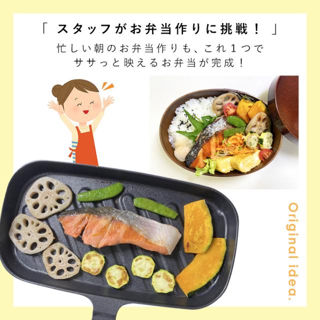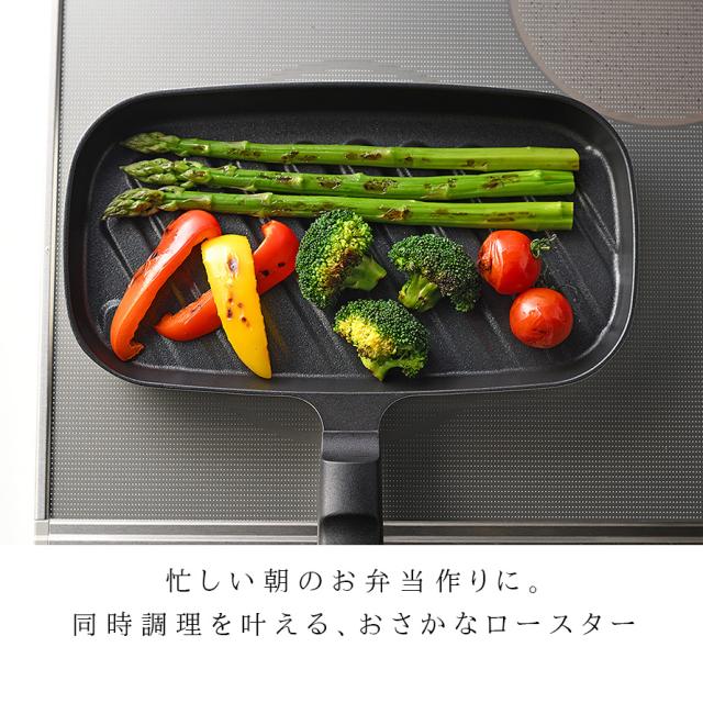 本格派なのにコンパクト。お弁当作りのハードルがグッと下がる、おさかなロースター。グリルを出さずに、鮭もウインナーも野菜もまとめて1つのロースター焼けるから、忙しい朝のお弁当作りがラクになします。