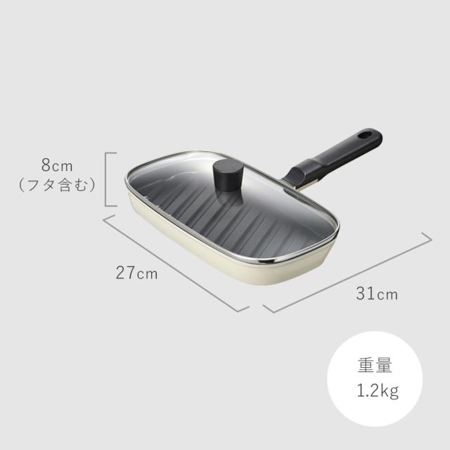 ■サイズ:幅27×奥行31×高さ8cm(フタ含む) 焼き面寸法/幅25×奥行11cm