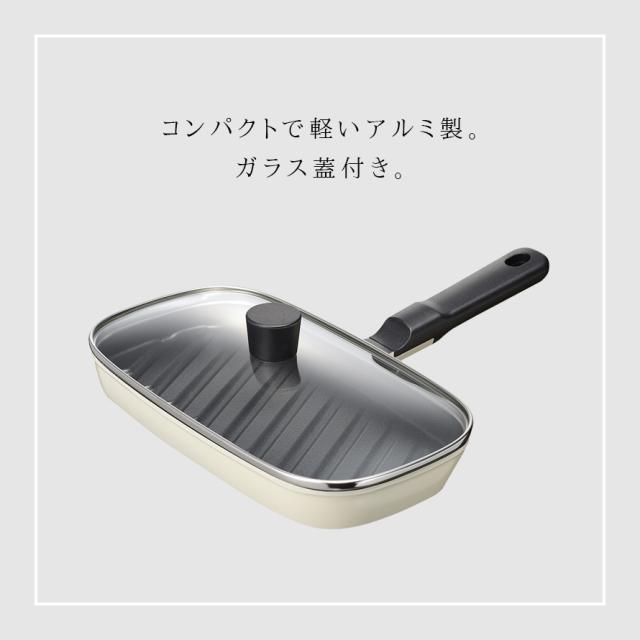 ガラス製の蓋付きで、焼き加減を見ながら、中までふっくら蒸し焼きも楽しめます。