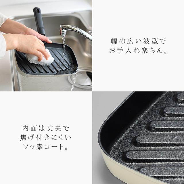 凹部の傾斜で奥側へ脂をあつめるのでふき取りも一拭きでラクラク!健康的で、毎日のヘルシーごはんに最適です。