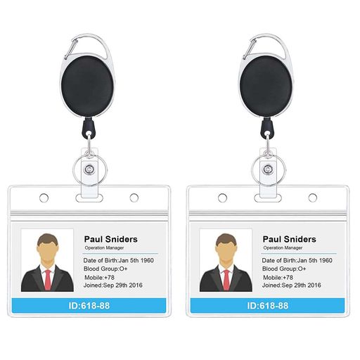 2個入り名札ホルダー 吊り下げ名札用リール 付き クリップ式オンリール IDカード、社員証、名刺、定期券ケース用 紛失防止、落下防止(ホリゾンタル)