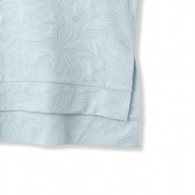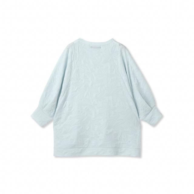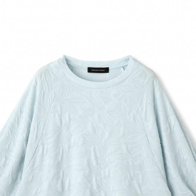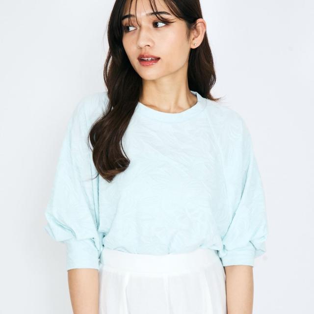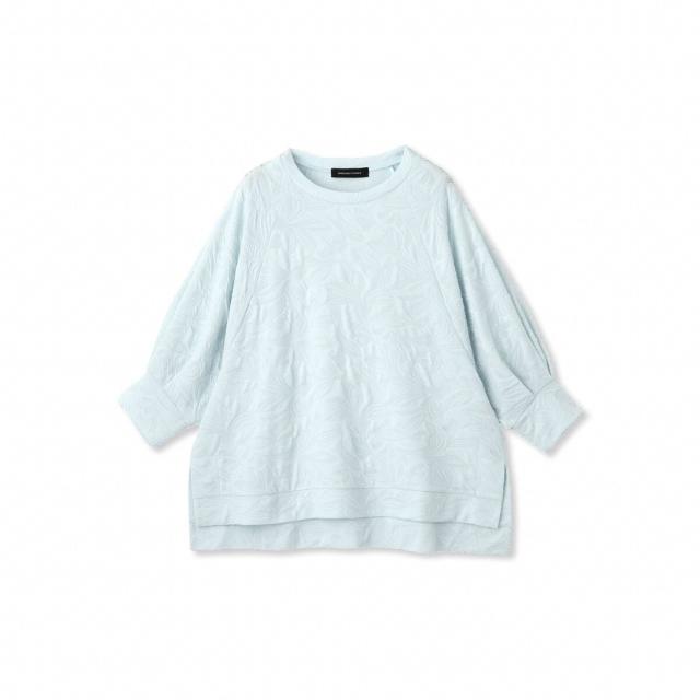 大柄のフラワーモチーフがあしらわれたカットソージャカードのファブリックを使用したハーフスリーブのプルオーバーです。単調になりがちな無地のカットソーもジャカード素材で表情豊かで、身体がおよぐボクシーなフォルムなので大人の方におすすめのデザイントップスです。