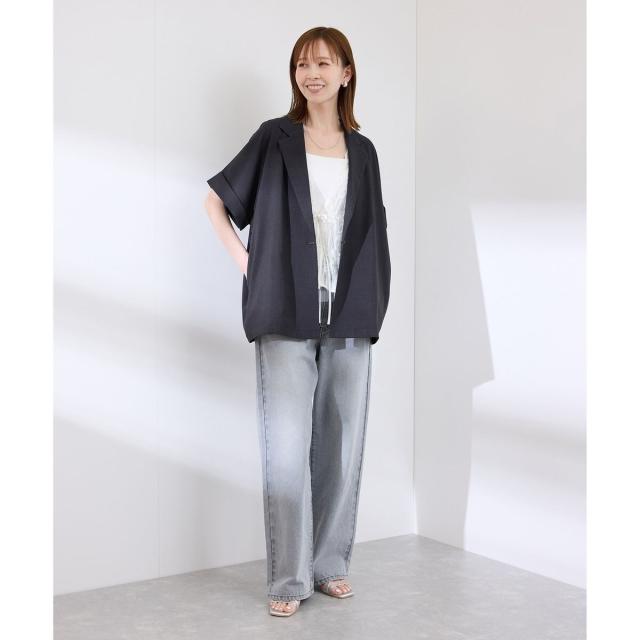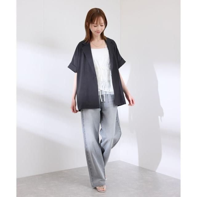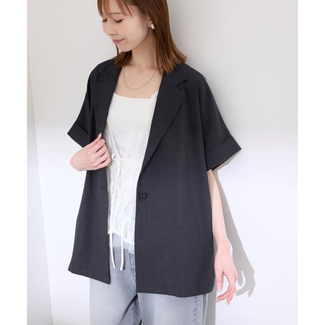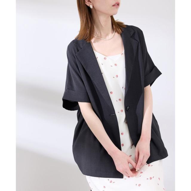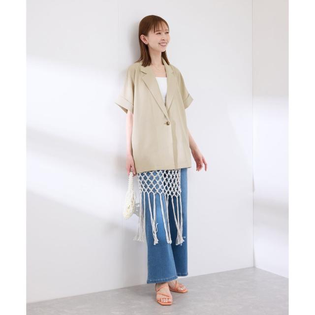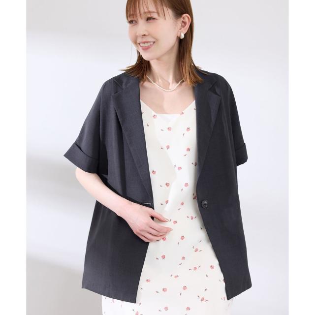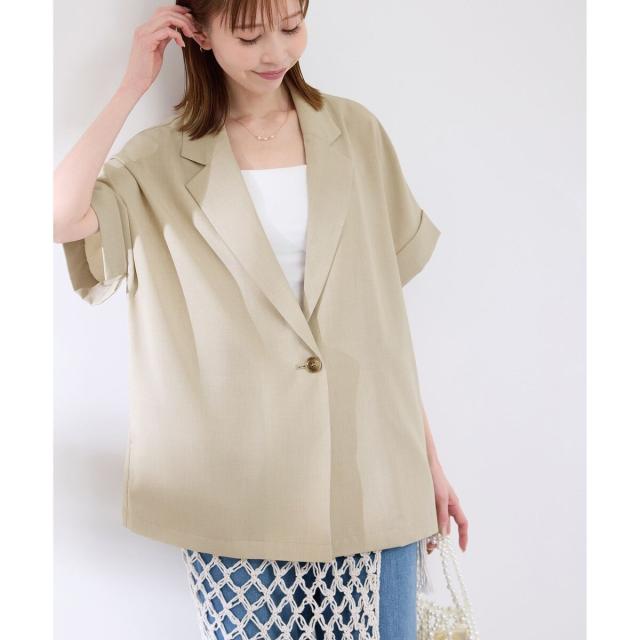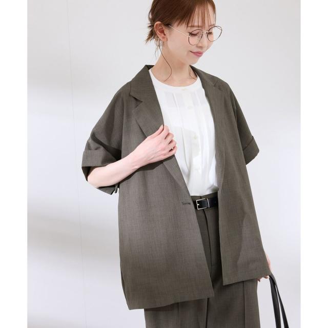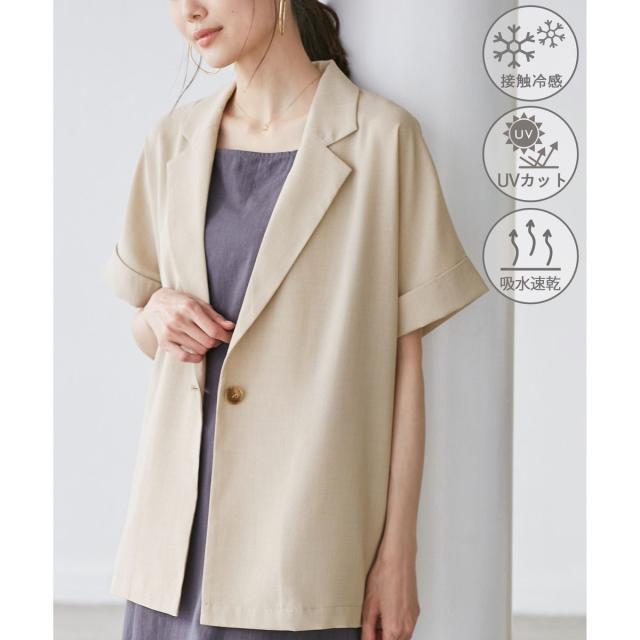 【接触冷感・UVカット・速乾】【リネンライク・シリーズ】シアーハーフスリーブジャケット/セットアップ
