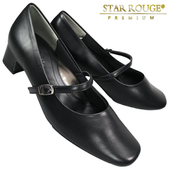 スタールージュ ストラップ付きパンプス LC3319 ブラック 22cm〜25cm 履きやすい フレキシブル 静音 黒 滑りにくい 抗菌防臭 合成皮革 STAR ROUGE