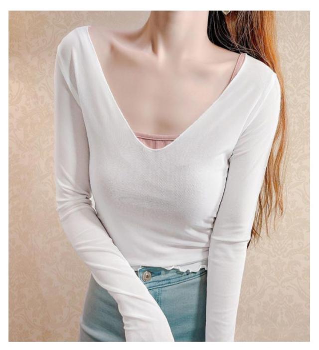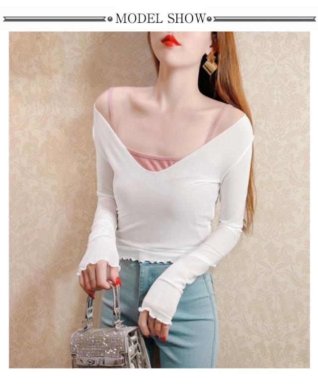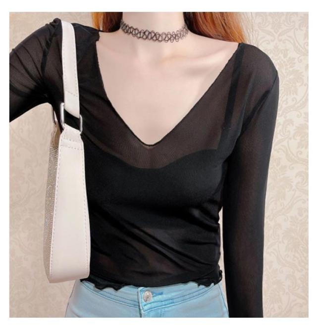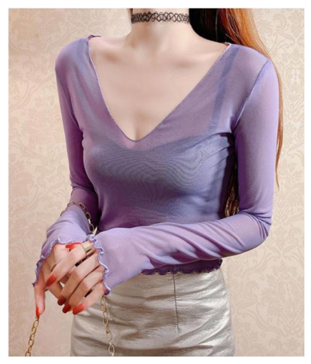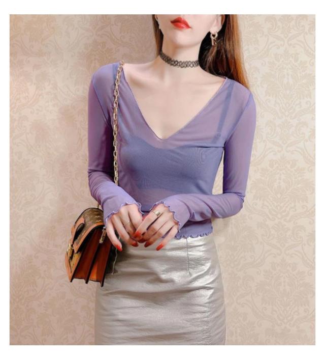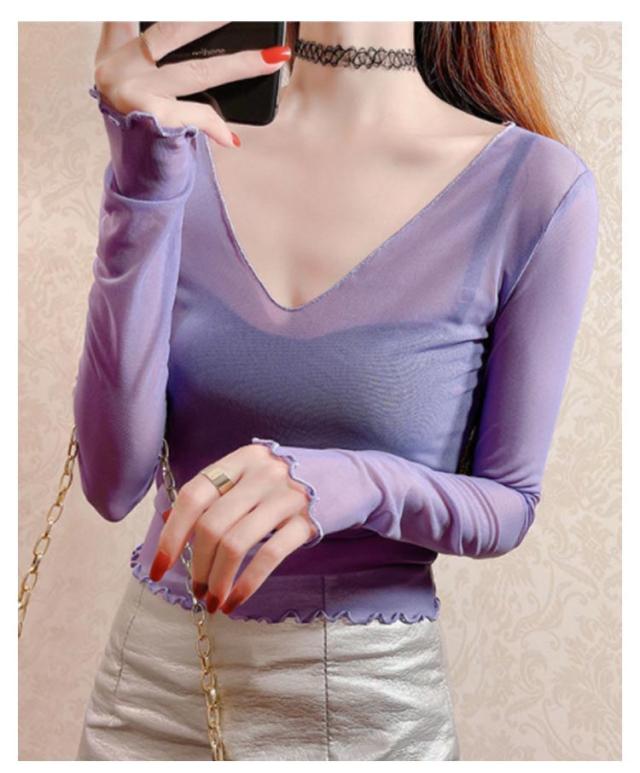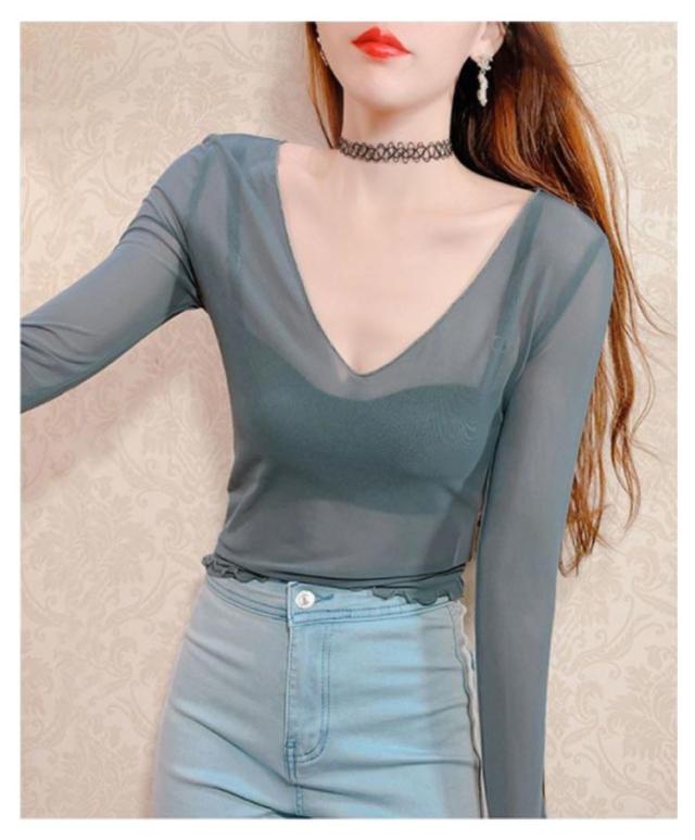 シアートップス 涼しい 長袖 シアー 五分袖 透け感 紫外線対策 重ね着 薄手 カットソー インナー シアー シアートップス おしゃれ ロンT Vネック 涼しい シースルー カットソー メロウ フリル 秋冬 首 春夏 トップス 春 夏 秋 冬 体型カバー