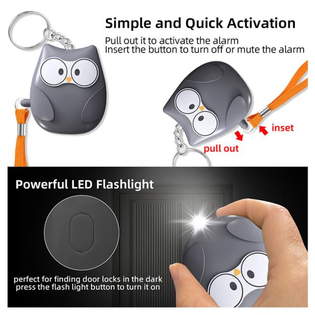 | 可愛くて機能的なLEDライト付き防犯ブザー。 可愛い猫ちゃんやペンギン、フクロの3種類から選べる防犯アラーム、コンパクトで可愛いデザイン、バッグやランドセルのアクセサリーとして、いつも持ち歩くことができます。 防犯ブザーの性能基準85dbを大きく上回る大音量の130dbで、周りにいち早く危険を知らせや不審者への威嚇対策に。 スイッチを押すだけで、LEDライトが点灯し、家の鍵を取り出す時や、キャンプ時、応急ライトとして、暗い夜道や災害時にも役立ちます。 ピンを抜くとアラームが鳴り、ピンを挿すと鳴り止みます。ピン式なので誤作動も少なく、お子様の安全に役立ちます。 通勤通学の防犯用、ランニングやウォーキング、海外旅行でも万が一の場合に持っておきたいアイテムです。 | |