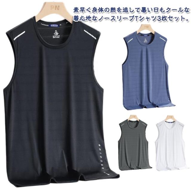 インナー 筋トレ 3枚セット 接触冷感 メッシュ メンズ ノースリーブ メッシュ タンクトップ 薄手 夏 吸汗速乾 速乾 スポーツウェア 運動着 ジム 大きいサイズ フィットネス ランニング トレーニングウェア 筋トレ 運動会 体育祭 作業着