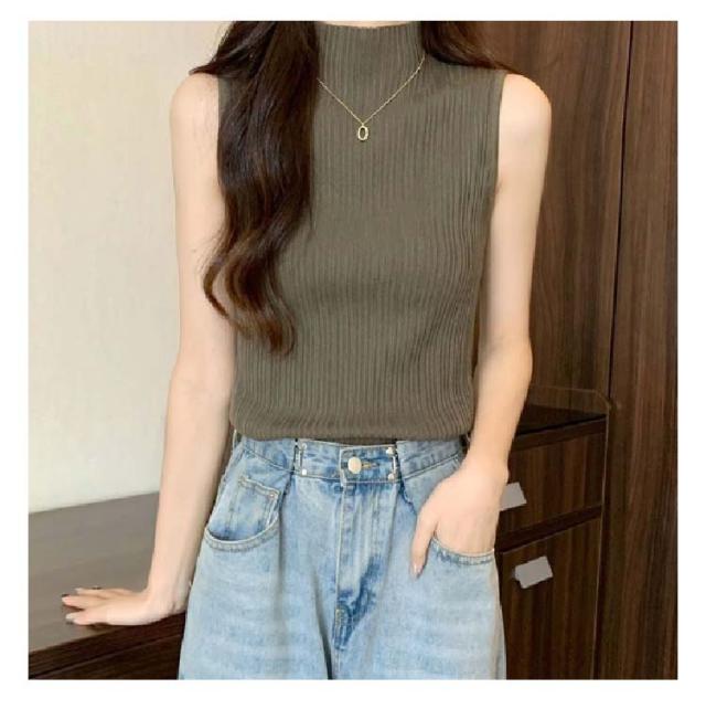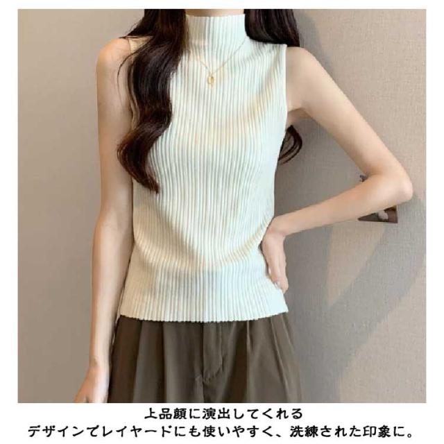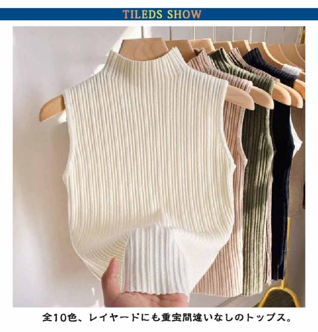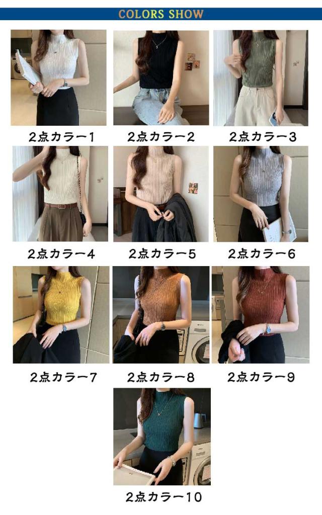 ノースリーブ ストレッチ トップス タンクトップ 接触冷感 全10色 2枚セット ハイネック ニットトップス M レディース Tシャツ トップス ハイネックニット レイヤード 春 夏 上品 大人 サマーニット オフィスカジュアル S 全10色 L XL