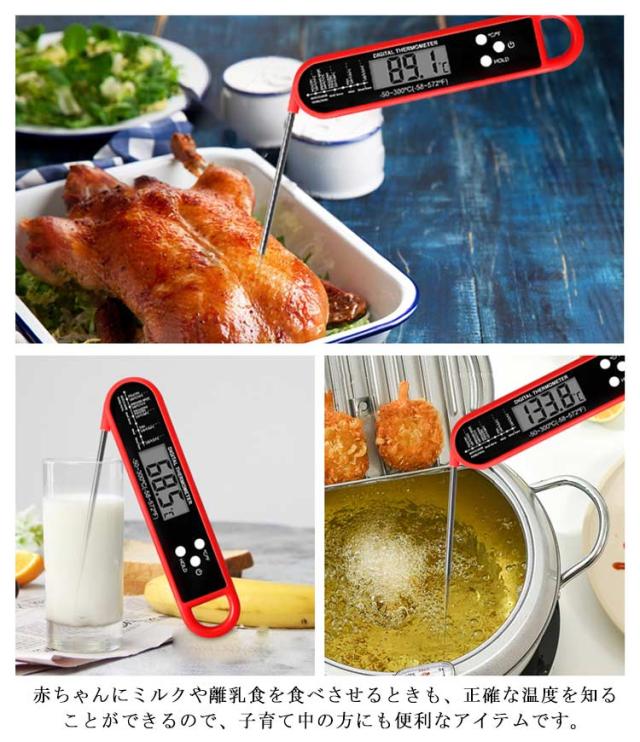 折りたたみ式 プロ仕様肉 3秒速読 見やすい グリル 料理用 天ぷら 油 揚げ物 ベビー クッキング温度計 ミルク デジタル温度計 キッチン温度計 摂氏/華氏 -50℃〜300℃ クッキング温度計 お菓子 調理用