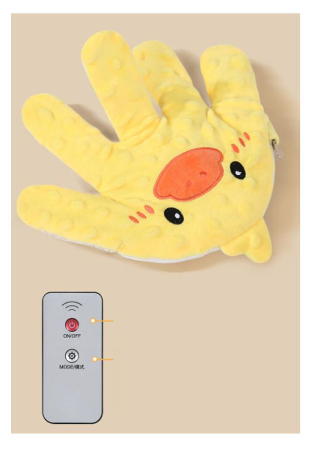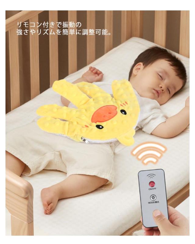 | 赤ちゃんのなだめる手のひら 指が動き。赤ちゃんに安心感を与える。 リモコン付きで振動の強さやリズムを簡単に調整可能。 電子レンジで温めることができます。(カバーを外してください) カバーは取り外して丸洗いOK、いつでも清潔に保てます。 | |