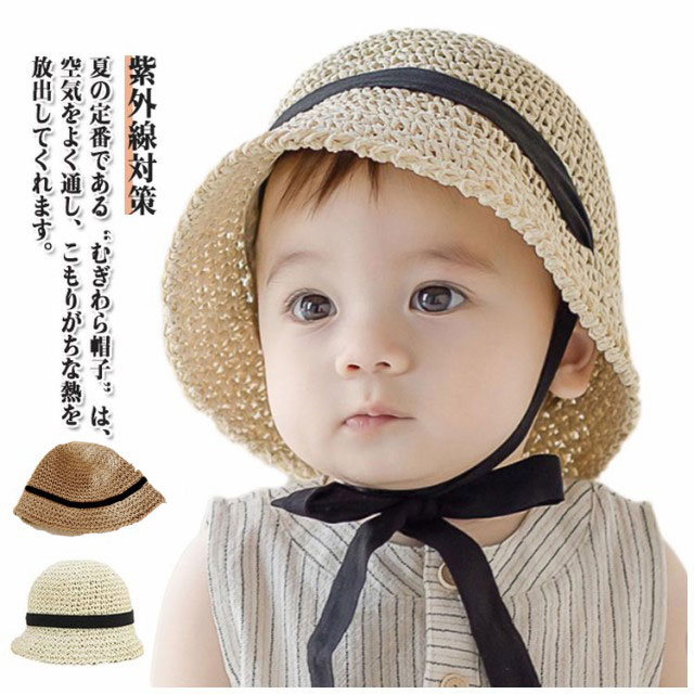 麦わら帽子 ベビー UV対策 紫外線対策 子供用 帽子 男の子 キッズ 送料無料 日よけ帽子 あご紐付き ナチュラル リボン 可愛い 送料無料 ハット 帽子 女の子 UVカット 熱中症対策 お出かけ お散歩 出産祝い プレゼント ギフト おしゃれ かわいい 旅行 春夏