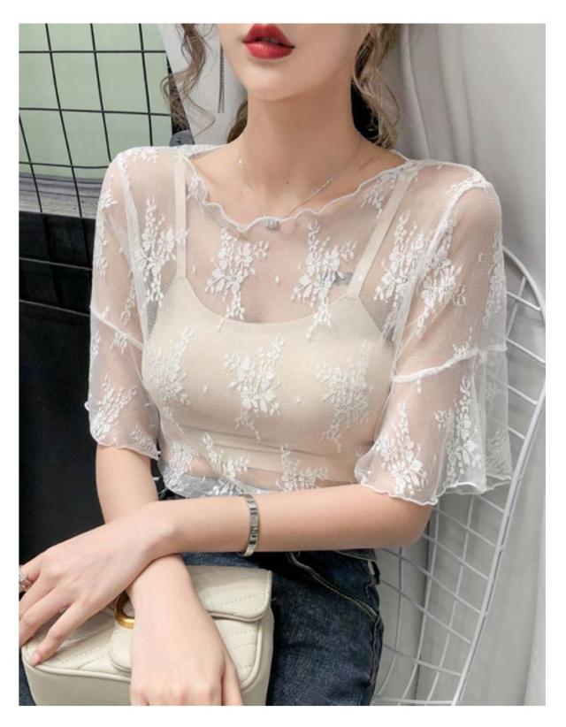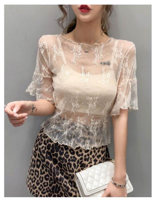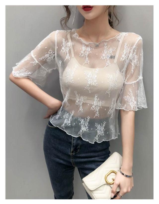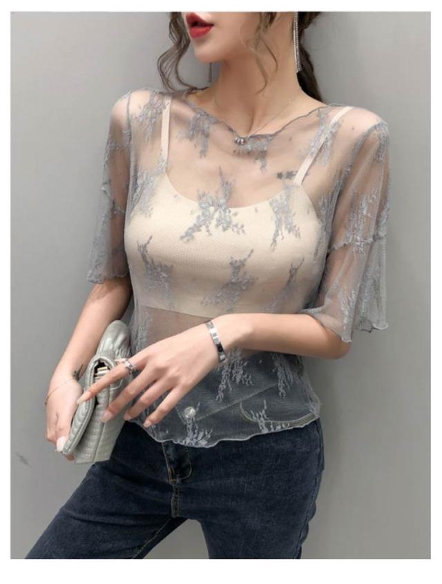 | 透け感ある生地で女の子らしさを演出してくれるシアーネット半袖 伸縮性の優れたシアー素材を使用しているので、見た目以上に窮屈感無く、着やすくスッキリとした印象に。 目の細かいメッシュ生地はひっかかりの無い滑らかな手触りです。 カジュアルからきれいめまでマルチに活躍できる、トレンド感をおさえた一枚です。 タンクトップやキャミソールなどと合わせて1枚での着用はもちろん、インナーに合わせてチラッと柄見せするのもおすすめです。 | |