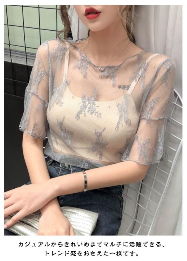 シースルー 透け感 トップス Tシャツ シアートップス シアートップス レディース 大人 シースルートップス フェミニン 春夏 秋 半袖 ブラウス クルーネック シアーTシャツ おしゃれ 半袖tシャツ モード カジュアル きれいめ S M L XL 2XL
