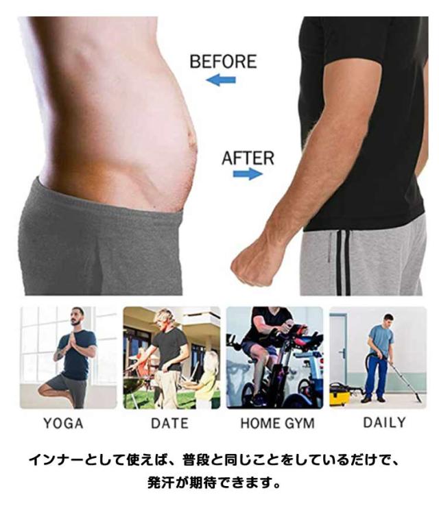 | 健康のためにもメタボを解消したいけど、まとまった時間がとれない・・・。 スポーツ好きな方であっても社会人になると、学生の頃のように運動する時間を確保することは難しいはずです。 そらなら短い時間でお腹周りの幅を減らせたらうれしいですよね? 運動時にこちらのサウナTシャツを着るだけで、ポリマー素材の保温効果で少し動くだけで発汗が促されます。 軽い運動でも、サウナ効果で滝汗を実現。 見た目は普通のTシャツですので、周りの目が気になりません。 また、コンプレッションタイプなので、アウターに響かないので、気になるようでしたら、インナーとしても活用することができます。 インナーとして使えば、普段と同じことをしているだけで、発汗が期待できます。 | |