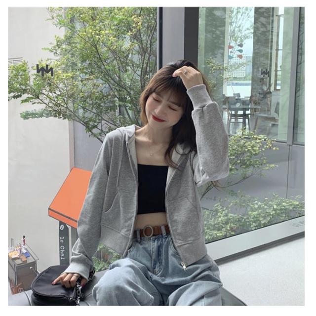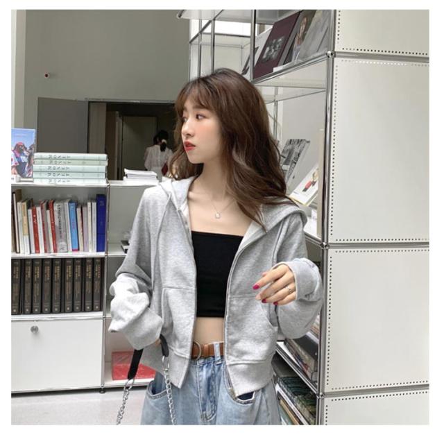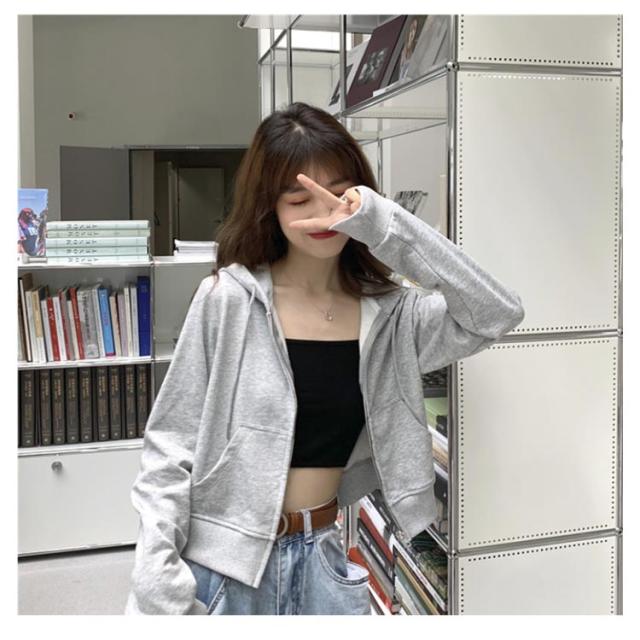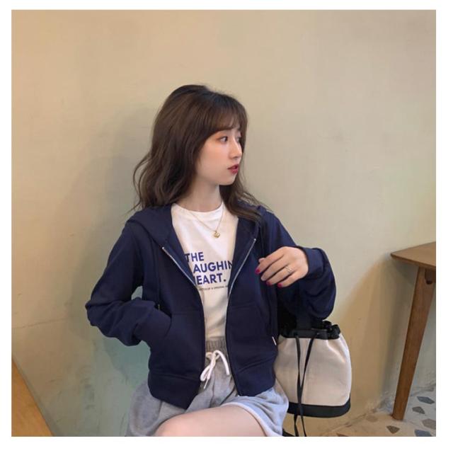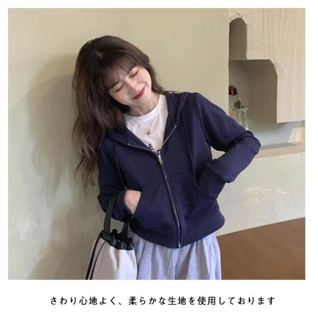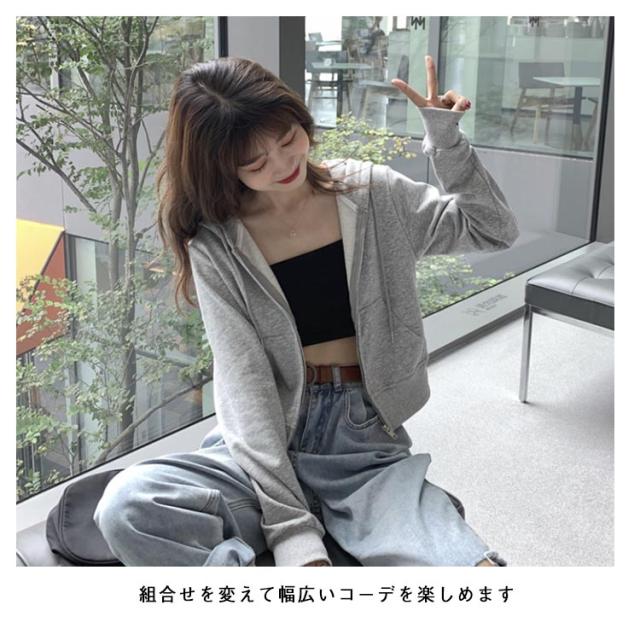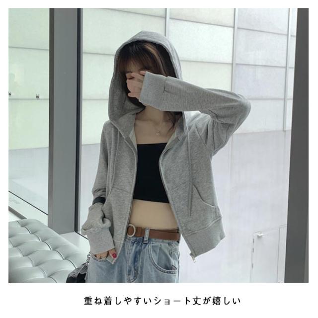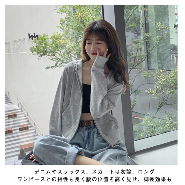 レディース パーカー へそ出し パーカー フーディ ジップアップ フロントジップ 大きいサイズ フード付き ショート丈 カットソー 長袖 薄手 シンプル 春 無地 冬 秋 HIPHOP ヒップホップ ァッション オーバーサイズ