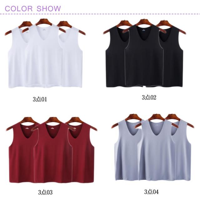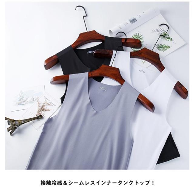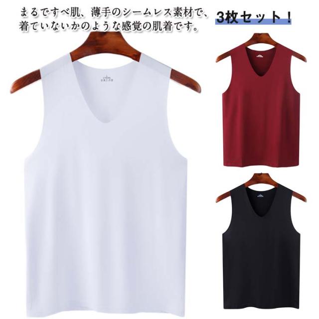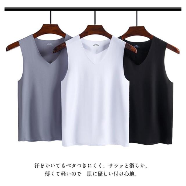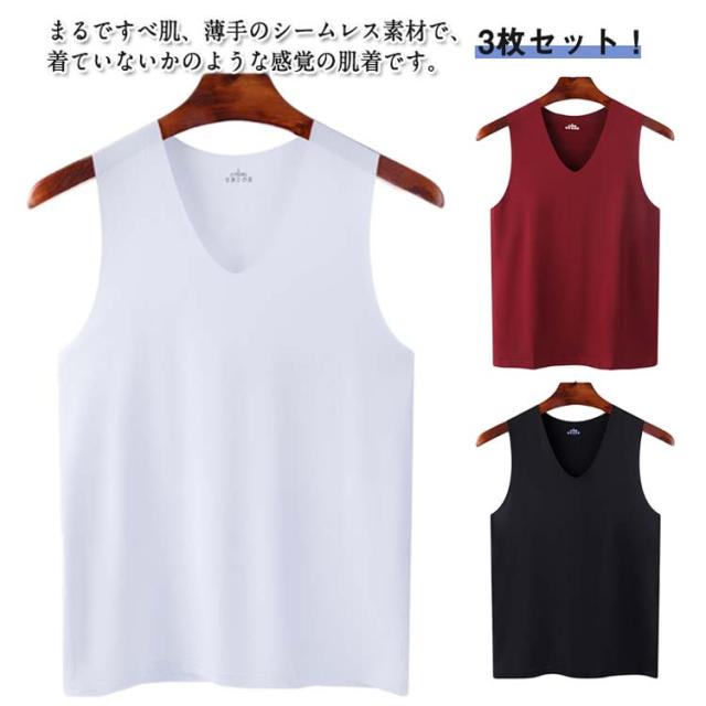 インナー 3枚セット!冷感 ノースリーブ 接触冷感 3枚セット!冷感 インナーシャツ 涼しい 夏用 メンズ ひんやり Vネック ルームウエア 肌着 アンダーウエア タンクトップ 薄手 トップス 春夏 シームレス タンクトップ スポーツ 運動着 ジム 野球 サッカー