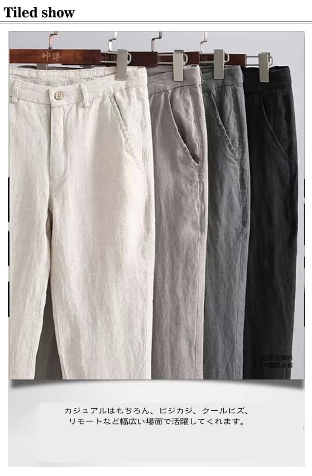 メンズ 綿麻 カジュアル 大きいサイズ スラックス リネン 60代 ストレート スーツパンツ ビジネス 綿麻 ストレートパンツ ビジカジ 薄手 通気性 リネンパンツ ズボン 春 パンツ 40代 50代 おしゃれ 70代 父の日 プレゼント ギフト 黒 白 グレー 裾上げ 9分丈