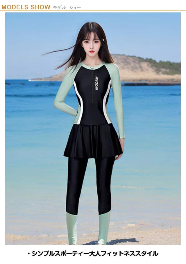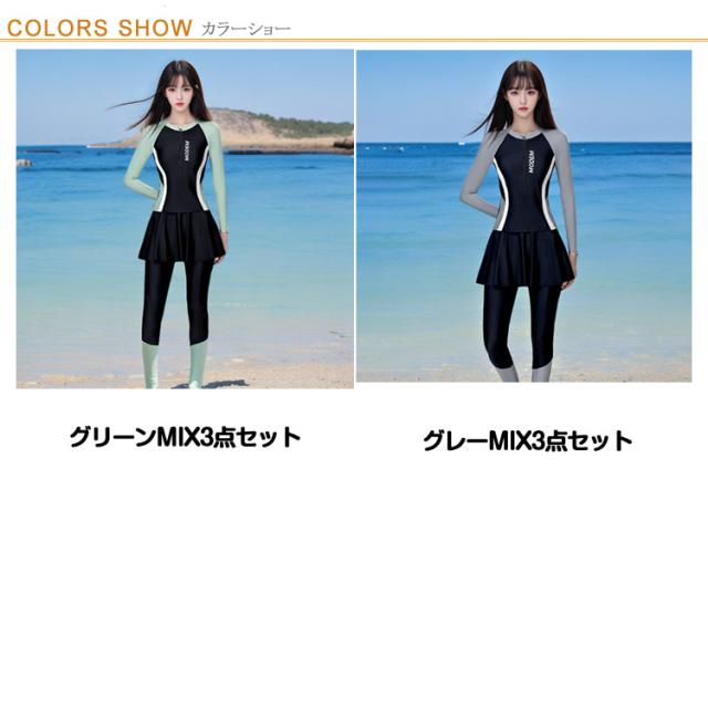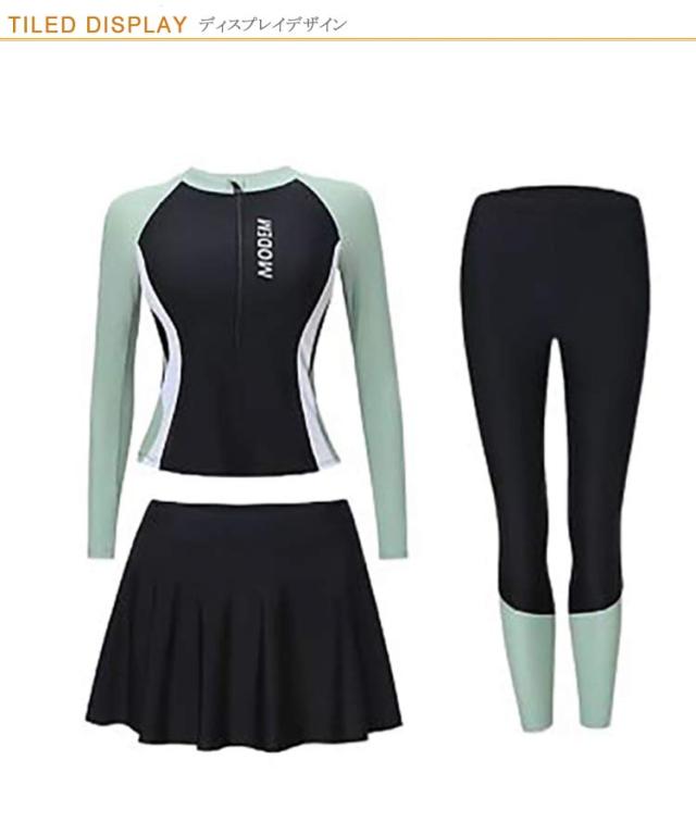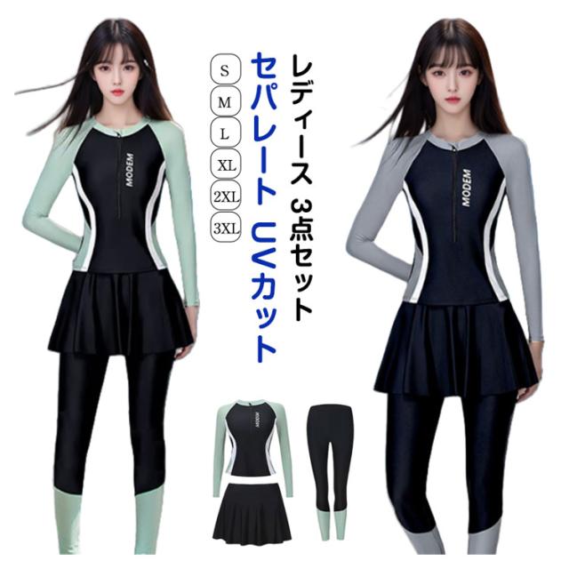 水着 ママ水着 レディース 大きいサイズ スカート ラッシュガード 3点セット パット入り 体型カバー プール セパレート UVカット フィットネス 長袖 紫外線対策 日焼け予防 水着 海