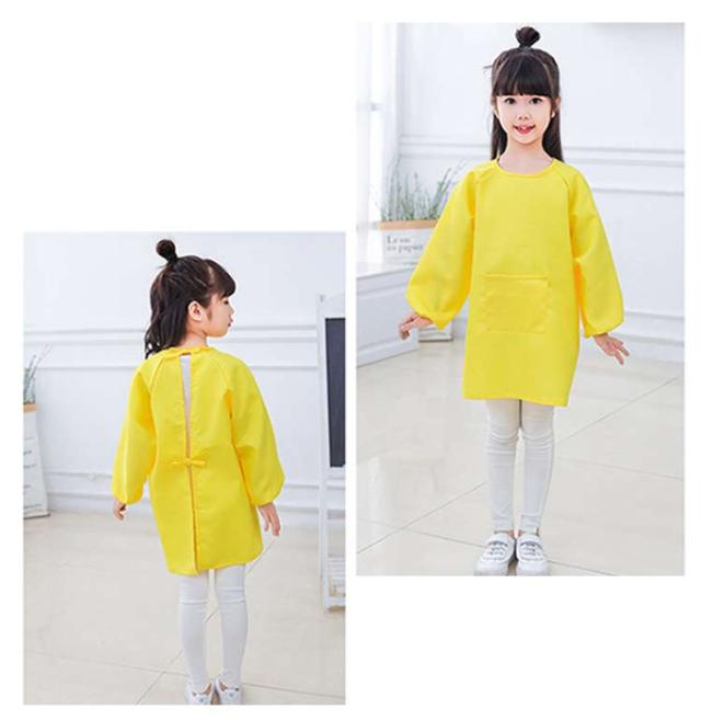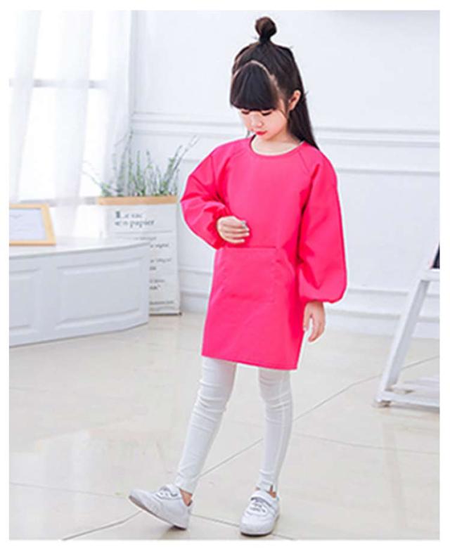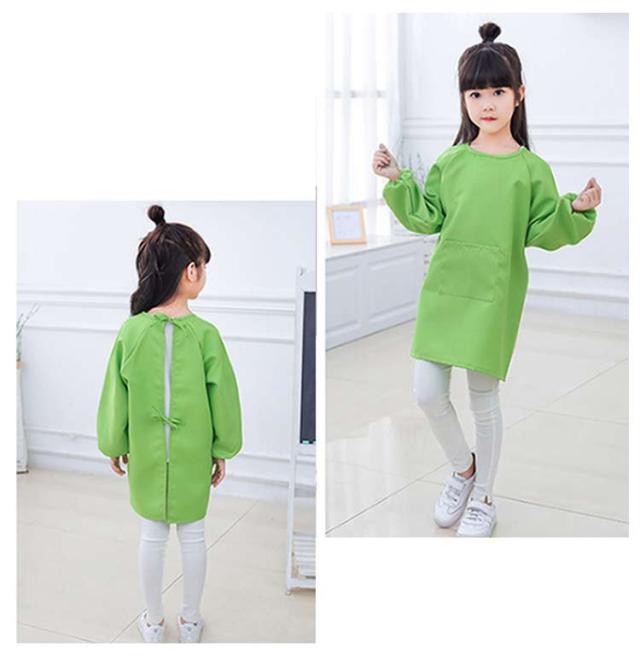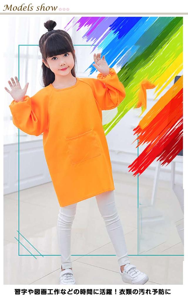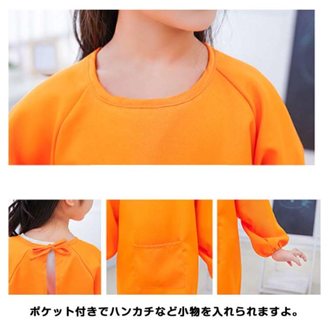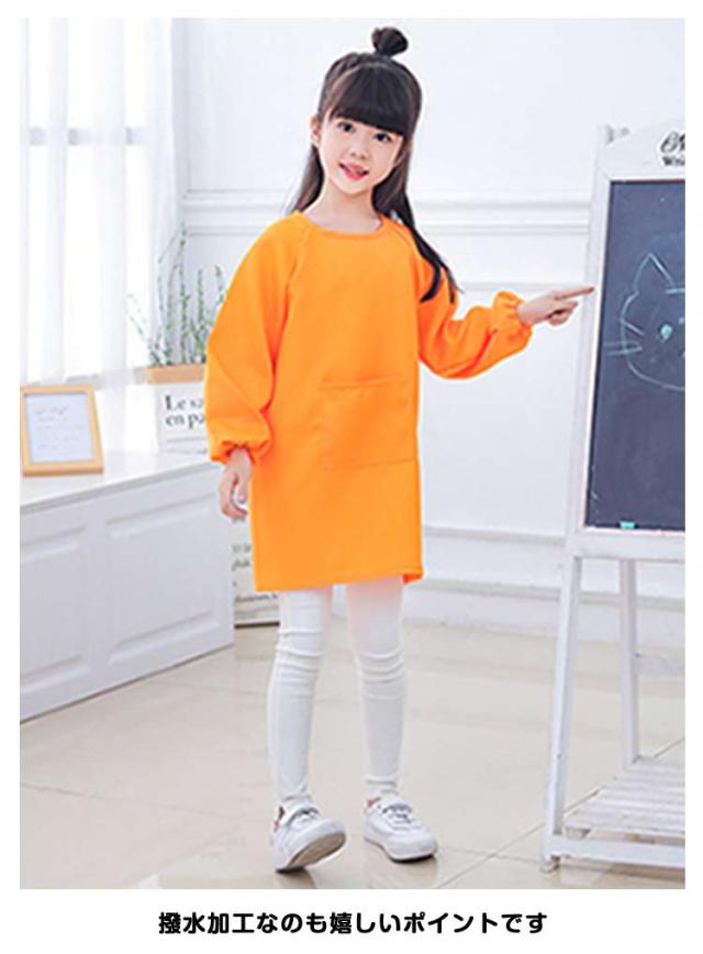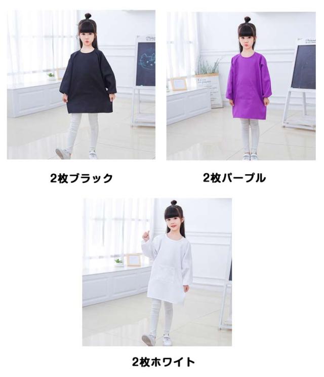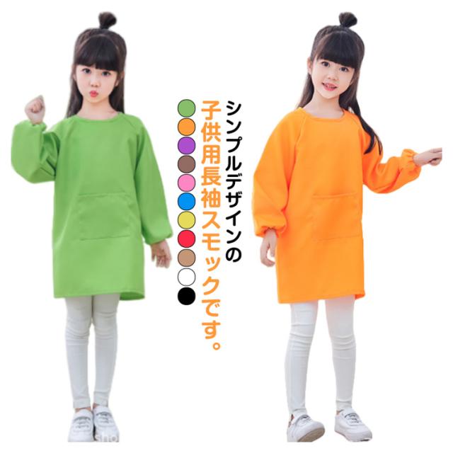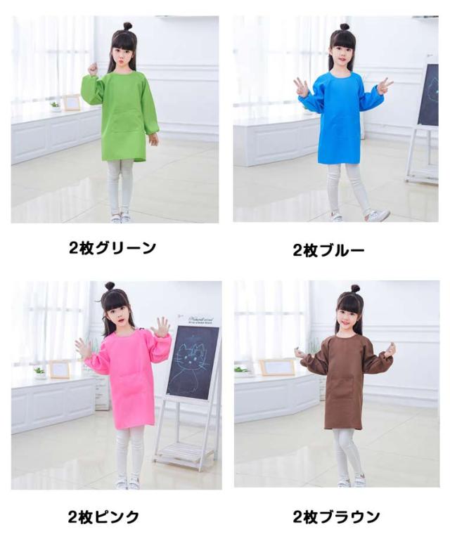エプロン 長袖 撥水加工 スモック キッズ 子供服 単色 2枚セット 保育園 汚れ防止 遊び着 幼稚園 小学生 トップス 習字 お食事 図工 図画工作 シンプル 無地 2枚セット 女の子 男の子 女児