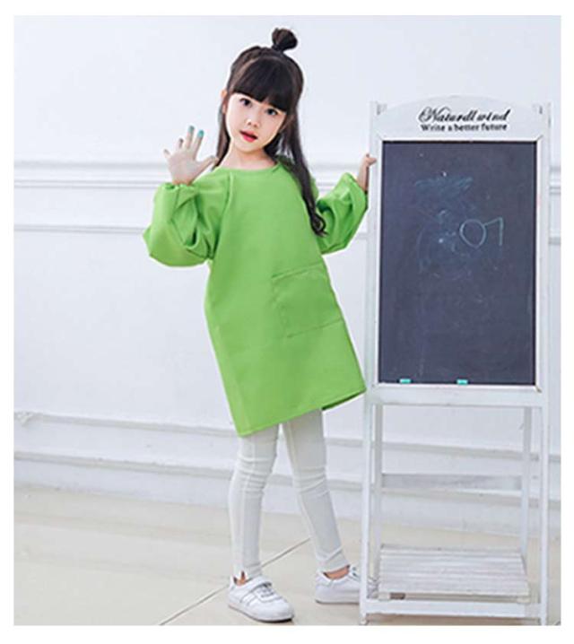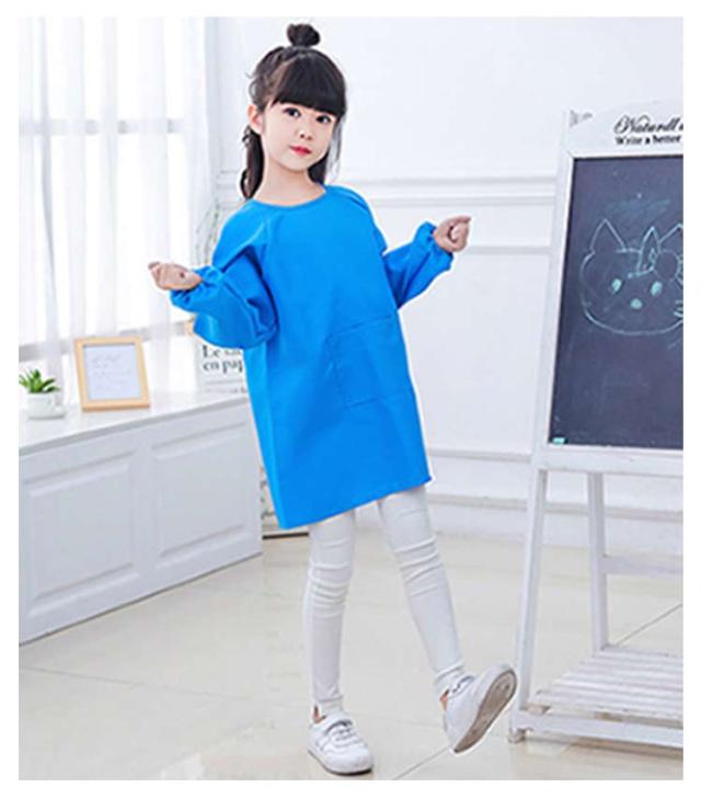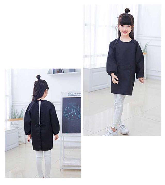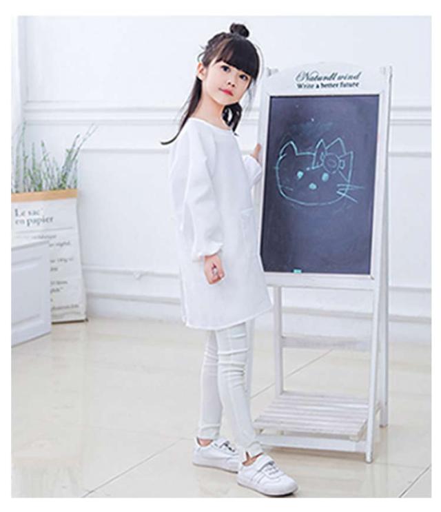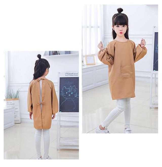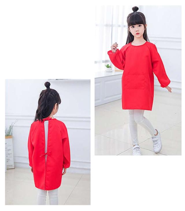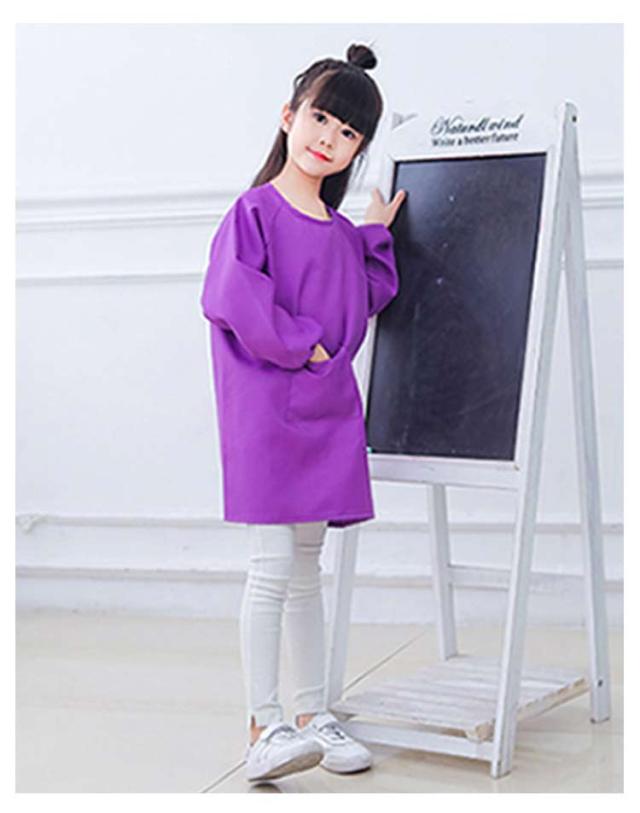| シンプルデザインの子供用長袖スモックです。 習字や図画工作などの時間に活躍!衣類の汚れ予防に 撥水加工なのも嬉しいポイントです ポケット付きでハンカチなど小物を入れられますよ。 | |