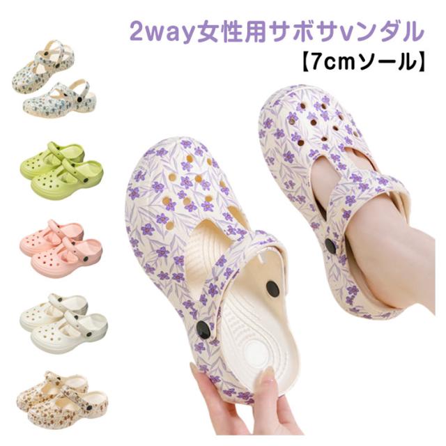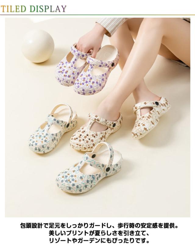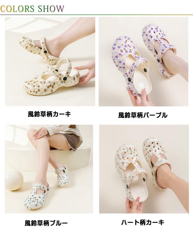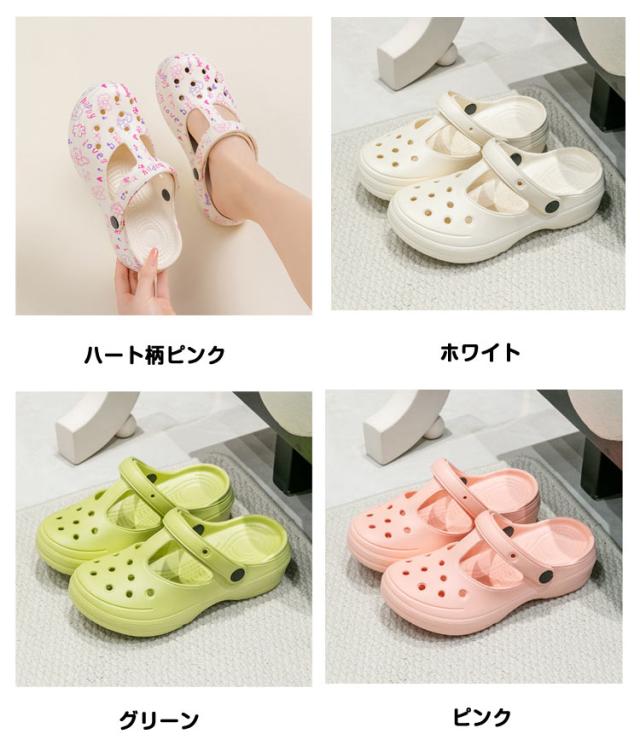 シューズ レディース ハート柄 軽量 2WAY 靴 サボ 花柄 2WAY つっかけ コンフォートサンダル EVA レインシューズ 厚底 防水 防滑 スリッパ シンプル カジュアル クロッグサンダル ビーチ ガーデン 春