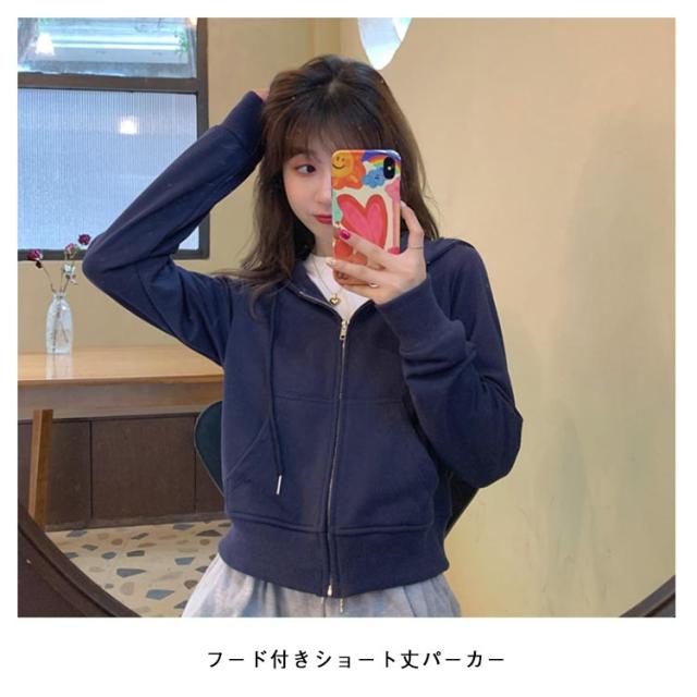 シンプル ジップアップ 秋 長袖 へそ出し レディース フロントジップ フーディ フード付き パーカー パーカ 大きいサイズ パーカー ヒップホップ 春 カットソー 冬 無地 HIPHOP 薄手 ァッション オーバーサイズ