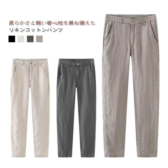 ストレート ギフト 薄手 春 綿麻 スーツパンツ 夏 メンズ 大きいサイズ ビジネス パンツ ストレートパンツ ビジカジ 通気性 リネンパンツ 綿麻 ズボン おしゃれ カジュアル 40代 リネン 60代 70代 父の日 プレゼント スラックス 黒 白 グレー 裾上げ 9分丈