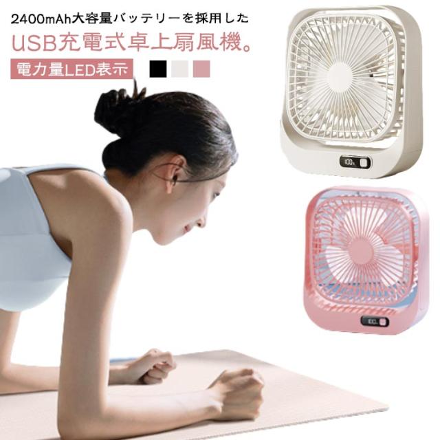 扇風機 卓上扇風機 静音 スリム 風量3段階 小型扇風機 usb扇風機 ミニ扇風機 上下角度調整 コンパクト シンプル おしゃれ 軽量 卓上 コードレス USB 充電式 デスクファン オフィス 事務所 寝室 省エネ 節電 換気 LEDディスプレイ ポータブル 携帯 ホワイト 白 黒