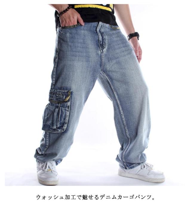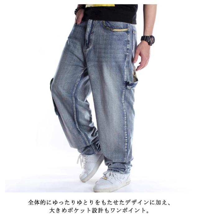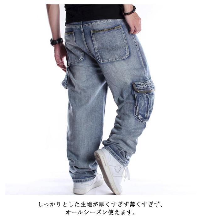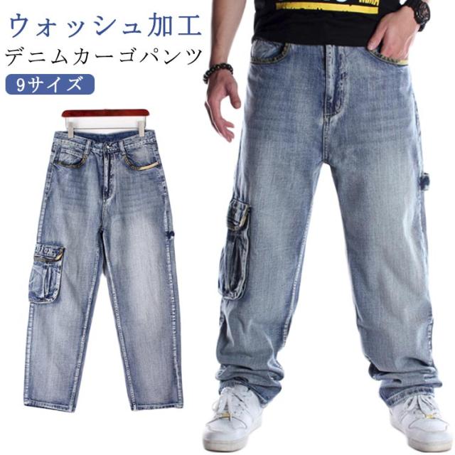 メンズ ワイドパンツ ゆったり バギーパンツ B系 ロング丈 6ポケット ダンス衣装 カーゴパンツ ジーパン 太め メンズ ジーンズ デニム ヒップホップ ストリート系 デニムパンツ ウォッシュ 夏 秋 冬