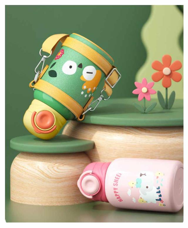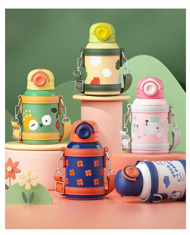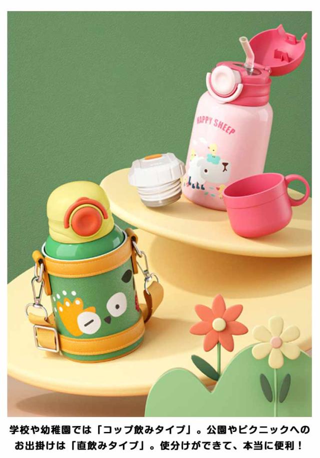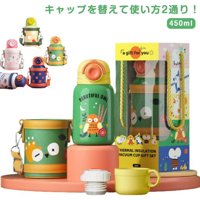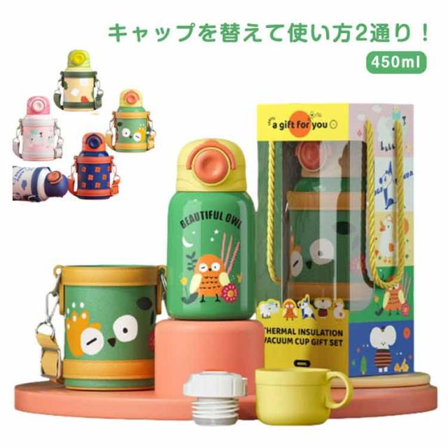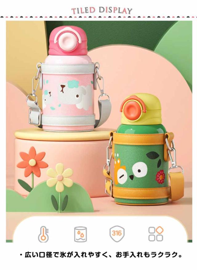 保冷 カバー付き キッズ ステンレス マグ 直飲み 水筒 水筒 保温 女の子 ワンタッチ 幼児 コップ飲み 450ml 肩掛け ステンレスボトル ショルダー 保育園 幼稚園 子ども 男の子 かわいい おしゃれ 遠足 入園準備