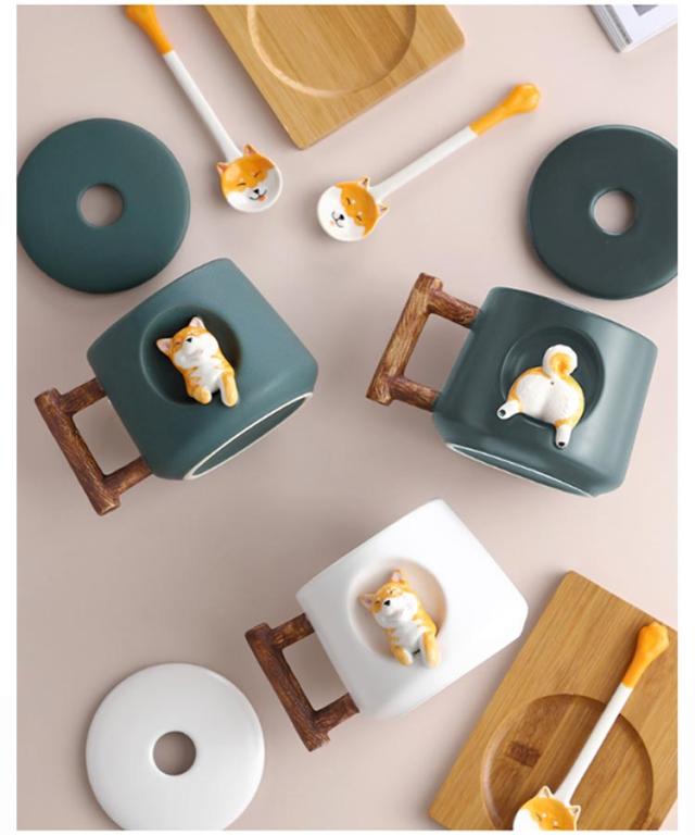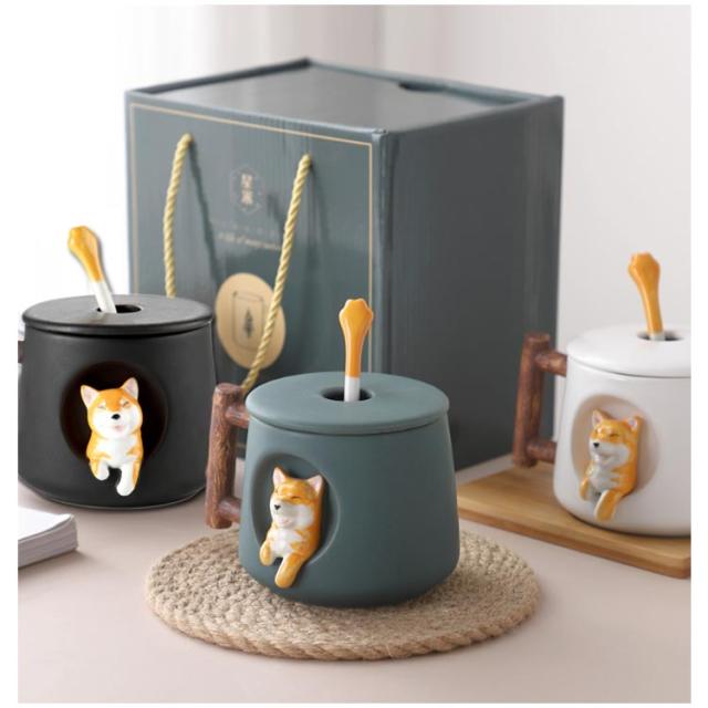 コップ 和食器 大容量 柴犬 マグカップ 誕生日 おしゃれ ティーカップ キッチン雑貨 柴犬柄 結婚祝い 大容量 大きい プレゼント カフェマグ コーヒーカップ 420ml プレゼント 洋食器 蓋付き 磁器 レディース メンズ カップル 男女兼用 ギフト 柴犬 北欧