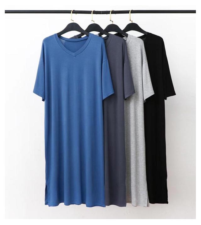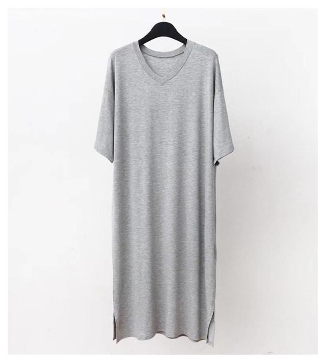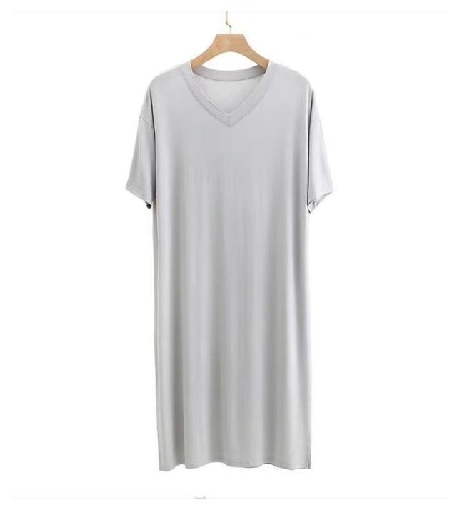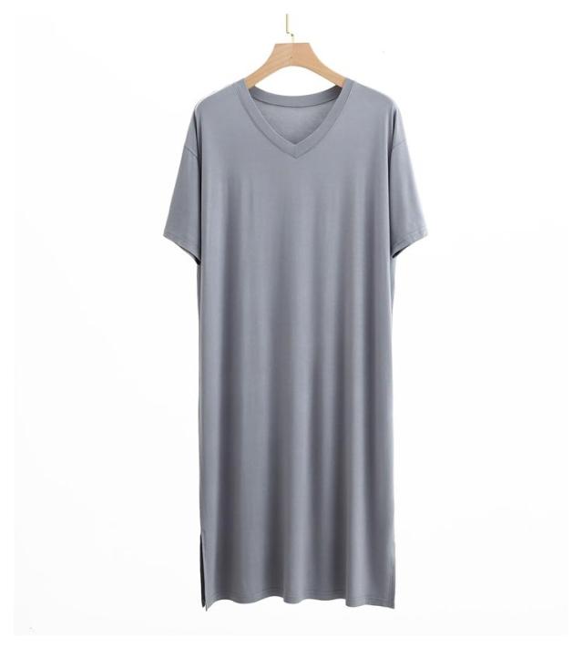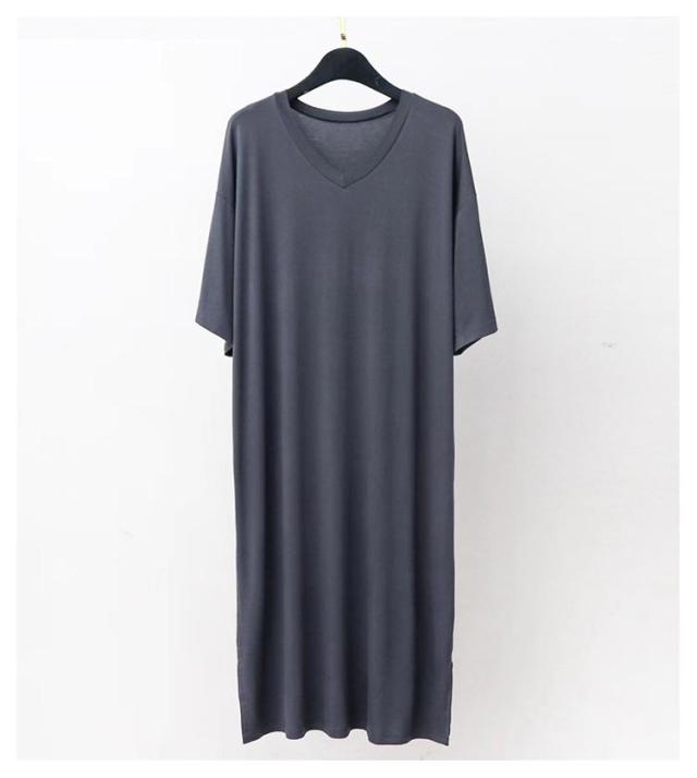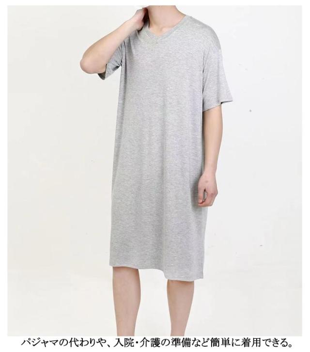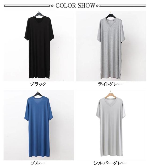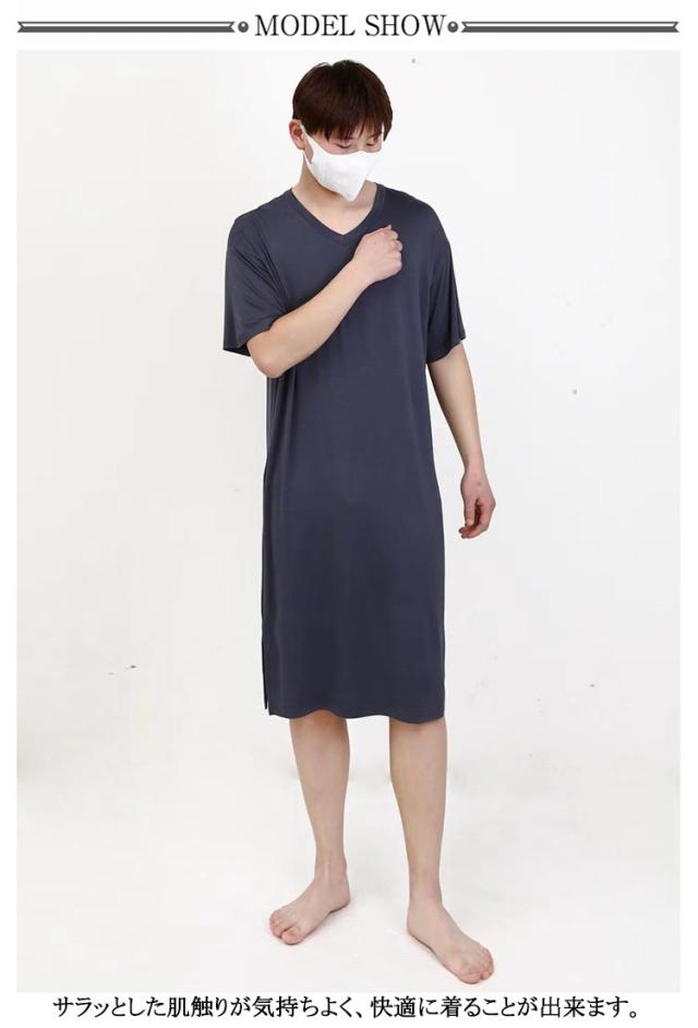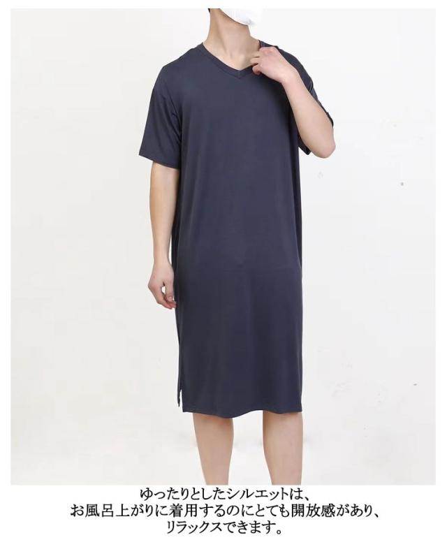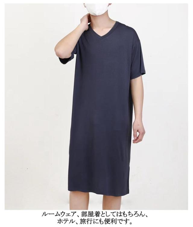スリーパー vネック メンズ ワンピース モダール 半袖 部屋着 春秋物 ゆったり ルームウェア 大きいサイズ 無地 柔らかい 寝巻き クールネック パジャマ 通気性 薄手 リラックス感