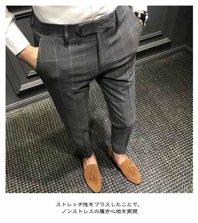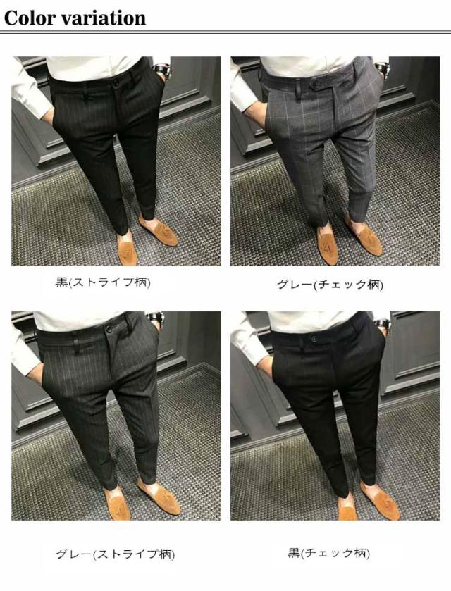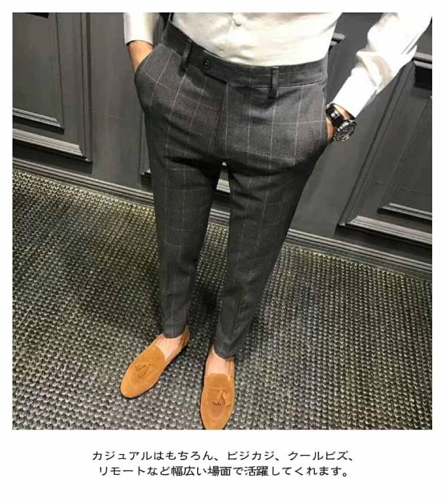 スラックス 夏 細身 9分丈 スリムパンツ オフィス スーツパンツ ビジネス ズボン 秋 スリム 通勤 チェック柄 9分丈 メンズ カジュアル ビジカジ ストレッチ 薄手 大きいサイズ カジュアルパンツ ストライプ柄 おしゃれ 黒 ブラック グレー チェックパンツ