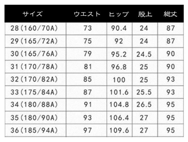 | サイズについての説明 | 28 29 30 31 32 33 34 |