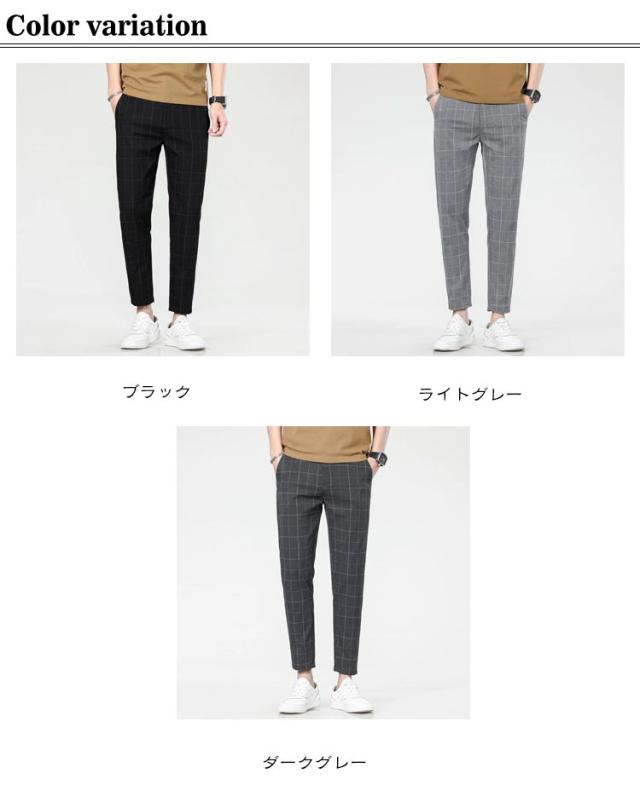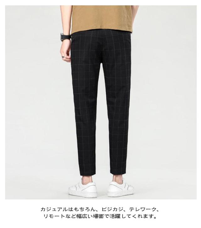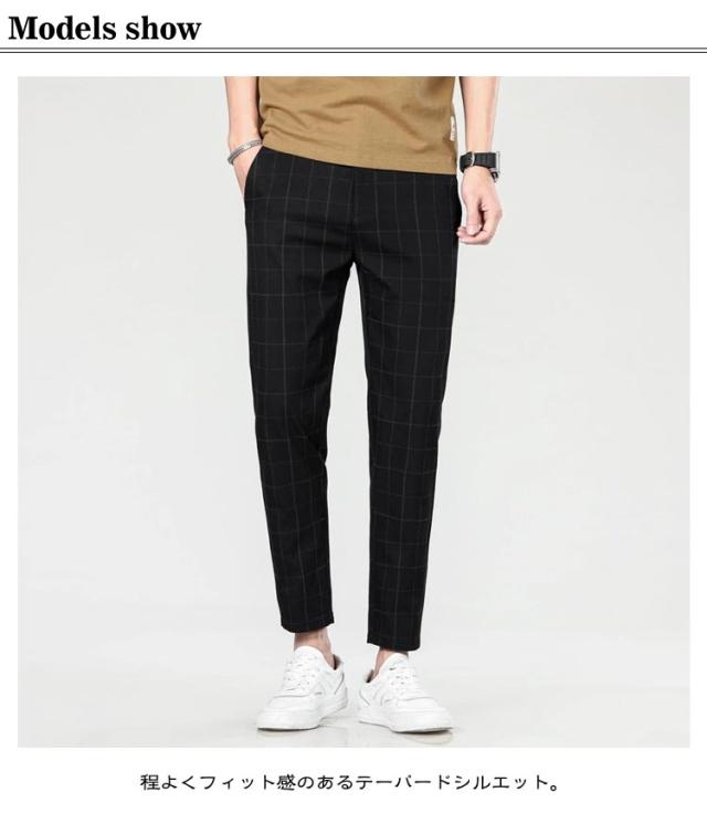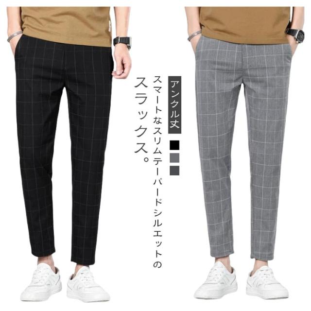 アンクル丈 春 スリム メンズ スーツパンツ 夏 テーパード チェック柄 ズボン 裾上げ チェック柄 テーパードパンツ スラックス おしゃれ 大きいサイズ 薄手 パンツ ビジネス カジュアル 父の日 プレゼント ギフト カジュアルパンツ チェックパンツ 黒 グレー