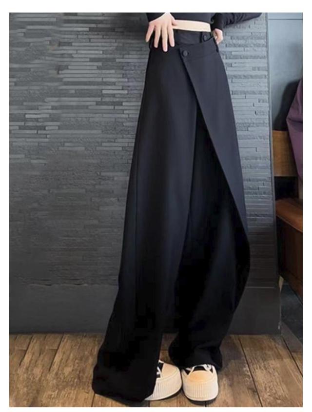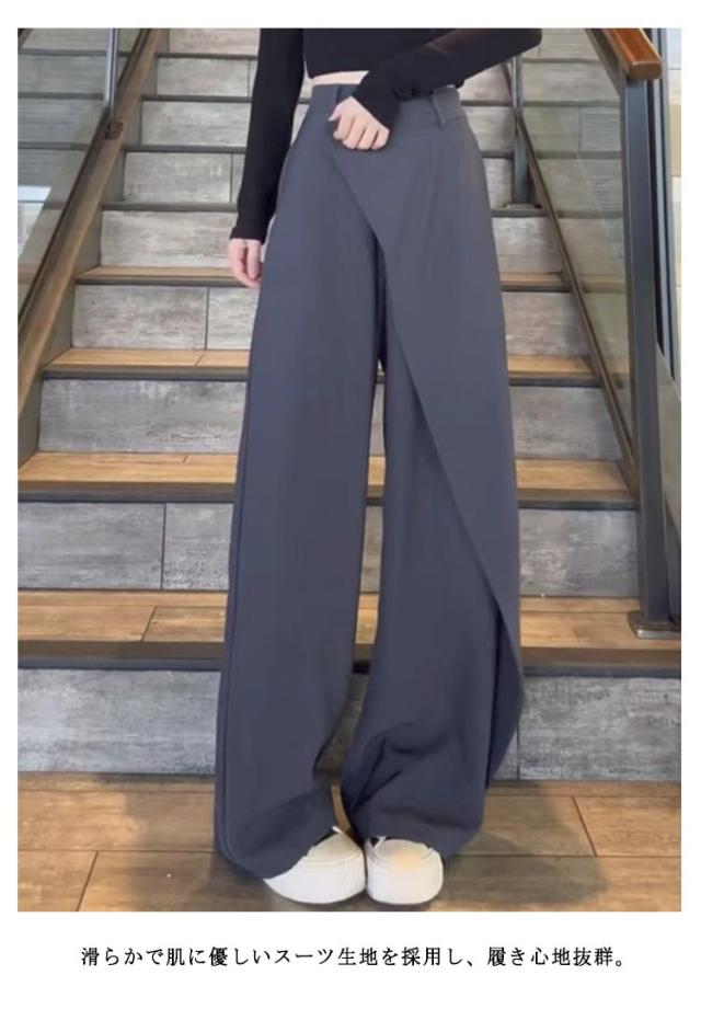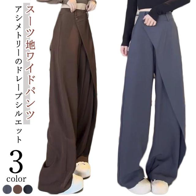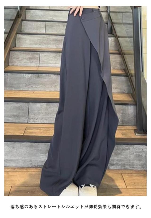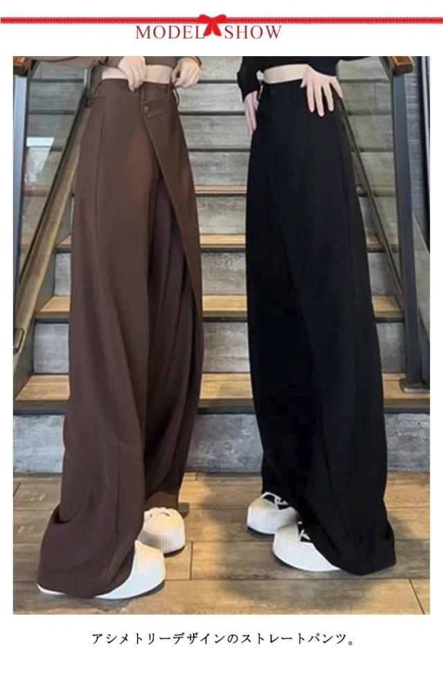アシメトリー お洒落 ゆったり ストレートパンツ 落ち感 スーツパンツ ボトムス 長ズボン ゆったり ハイウエスト ワイドパンツ ワイド ブラック 茶色 グレー