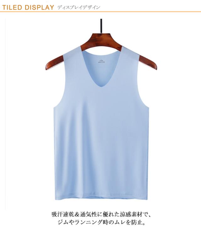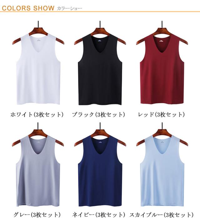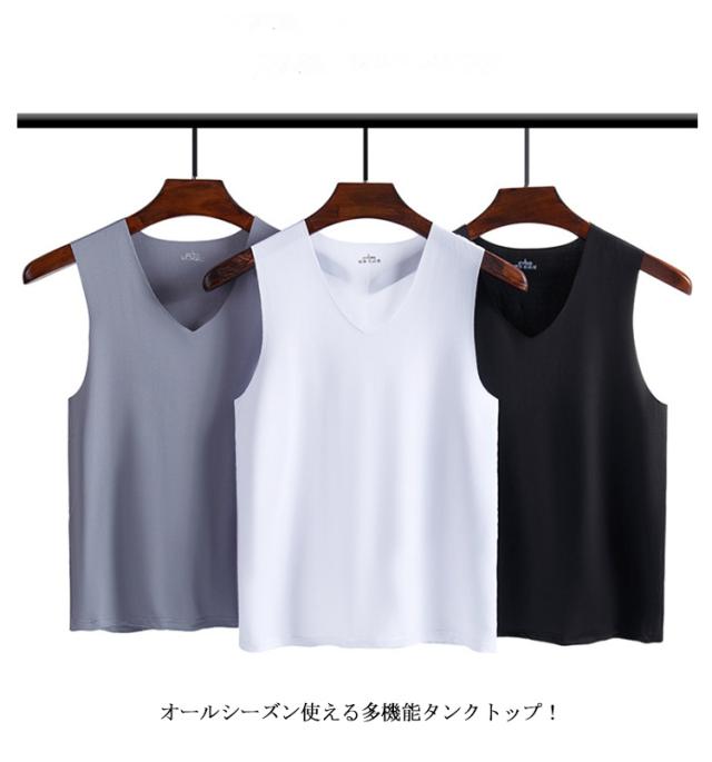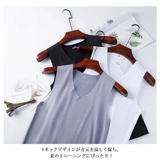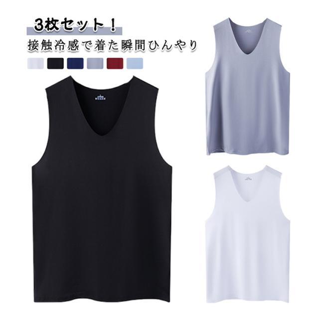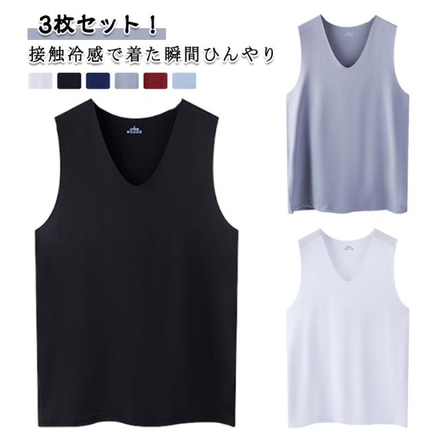 Vネック タンクトップ 春夏 ノースリーブ 接触冷感 涼しい スポーツ インナー 重ね着 3枚セット 吸汗速乾 シームレス 通気性 トップス 肌着 メンズ 快適 涼感 軽量 肌ざわり スリム タンクトップ ジム トレーニング アウトドア