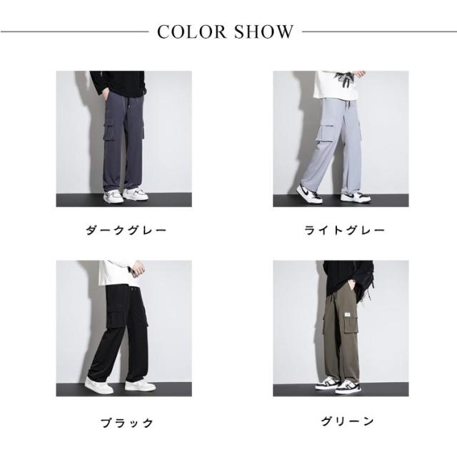 カーゴパンツ パンツ 冷感パンツ ワイドパンツ メンズ アイスシルクパンツ チノパンツ 長ズボン 夏 カジュアルパンツ ひんやり カジュアル イージーパンツ ゆったり 作業着 ワークパンツ ズボン 薄手 涼しい 軽量 ロングパンツ 接触冷感 春 夏 秋