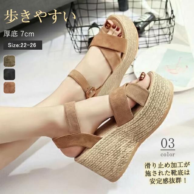サンダル レディース ウェッジソール 走れる 厚底 7cm ヒール 歩きやすい アンクルストラップ さんだる 美脚 脚長 コンフォ