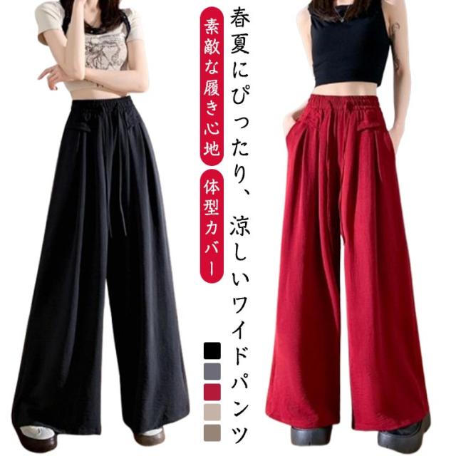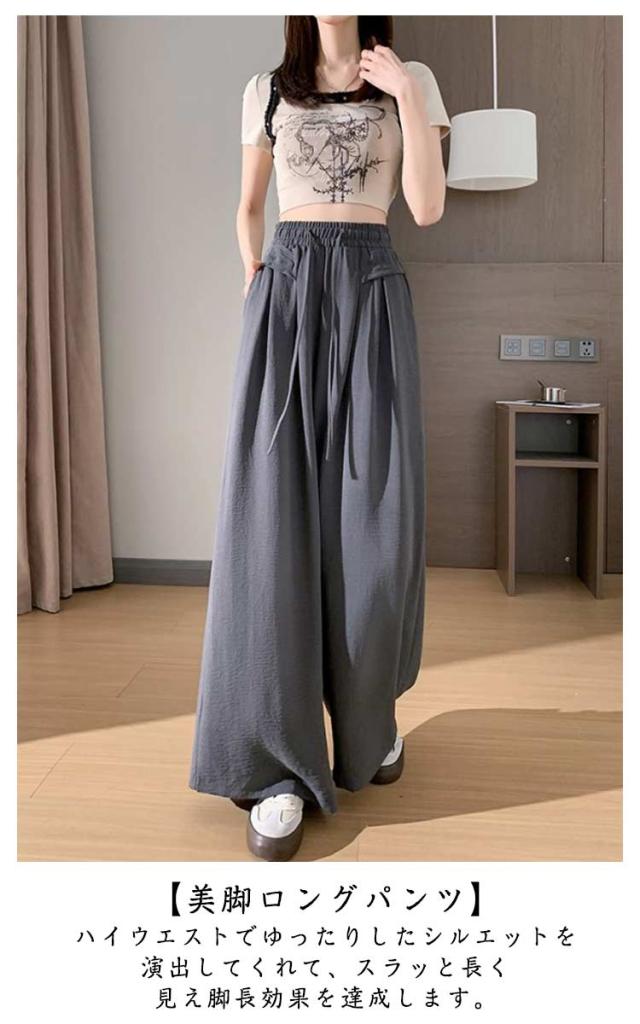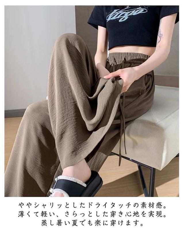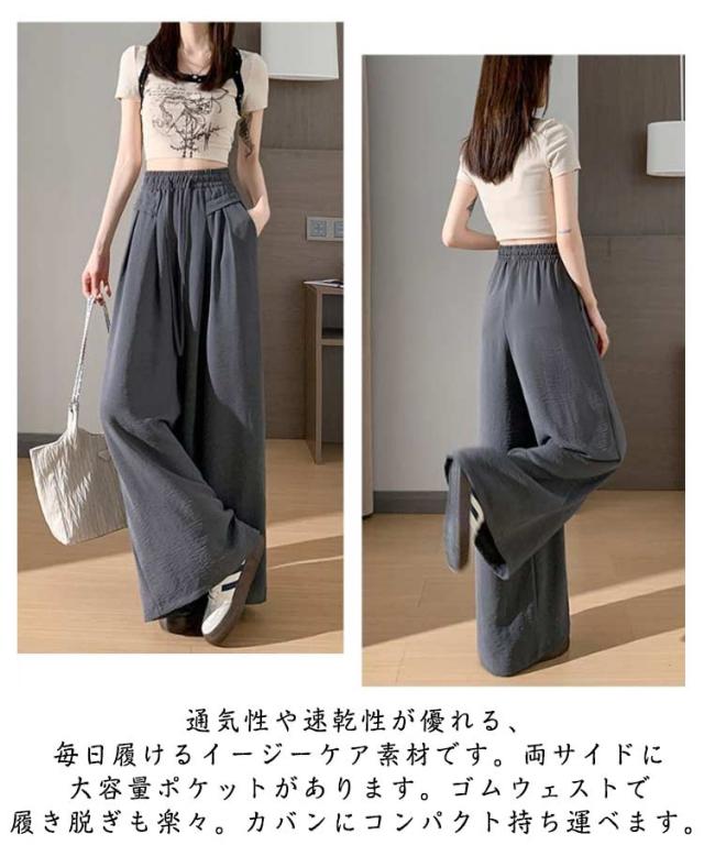 ワイドパンツ レディース ガウチョパンツ さらさら 接触冷感 夏 薄手 ロング ひんやり イージーパンツ 涼しい シワ加工 ワイド ガウチョ ウエストゴム ズボン 長ズボン リラックス ワイドパンツ 大きいサイズ お洒落 夏服