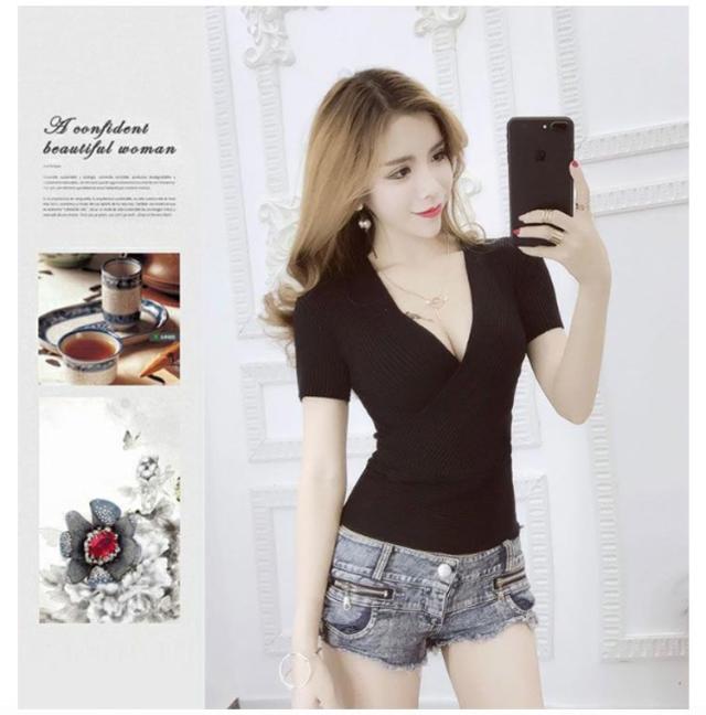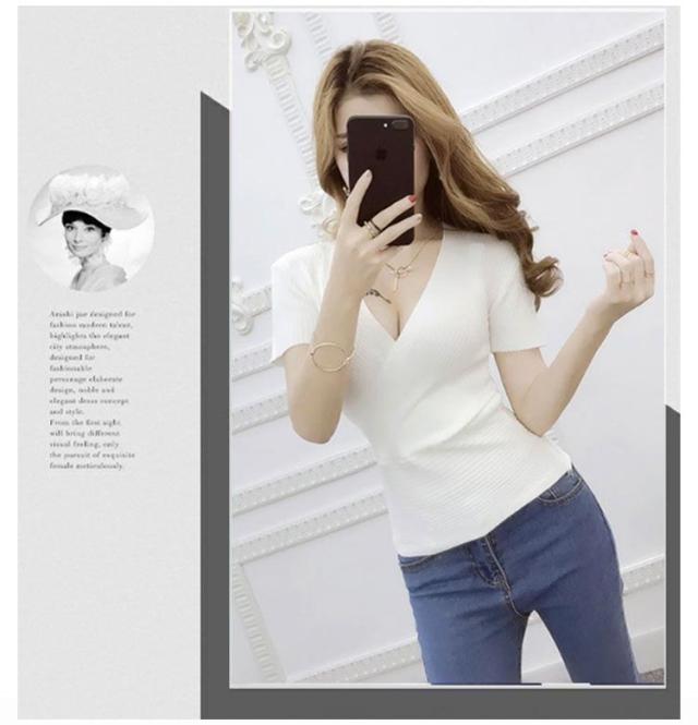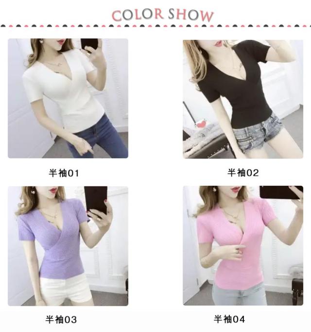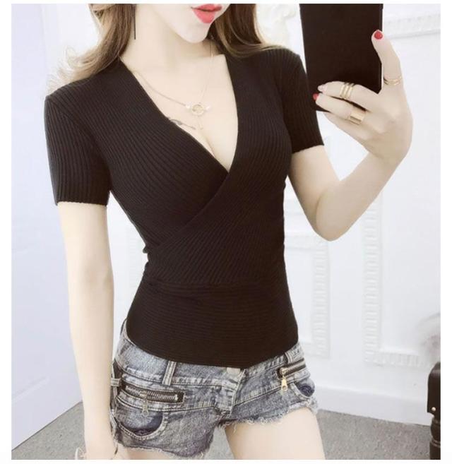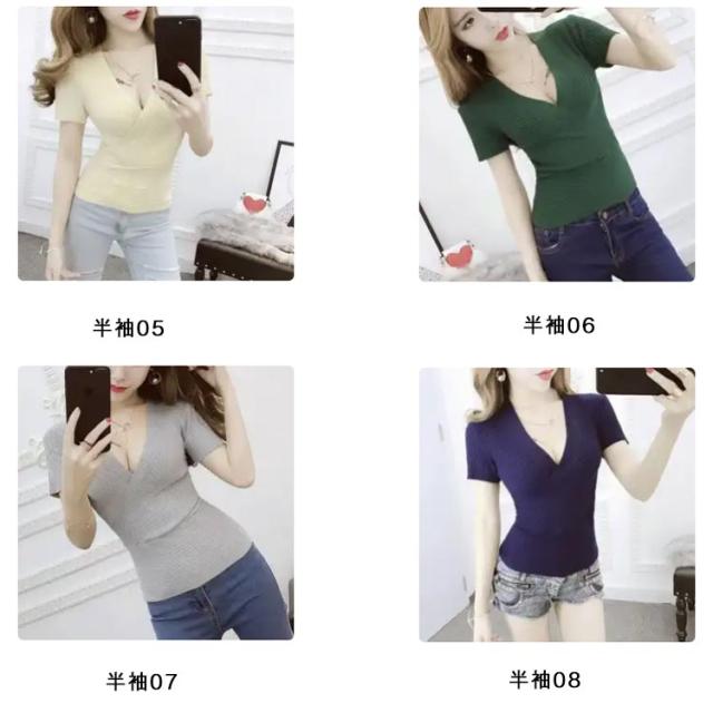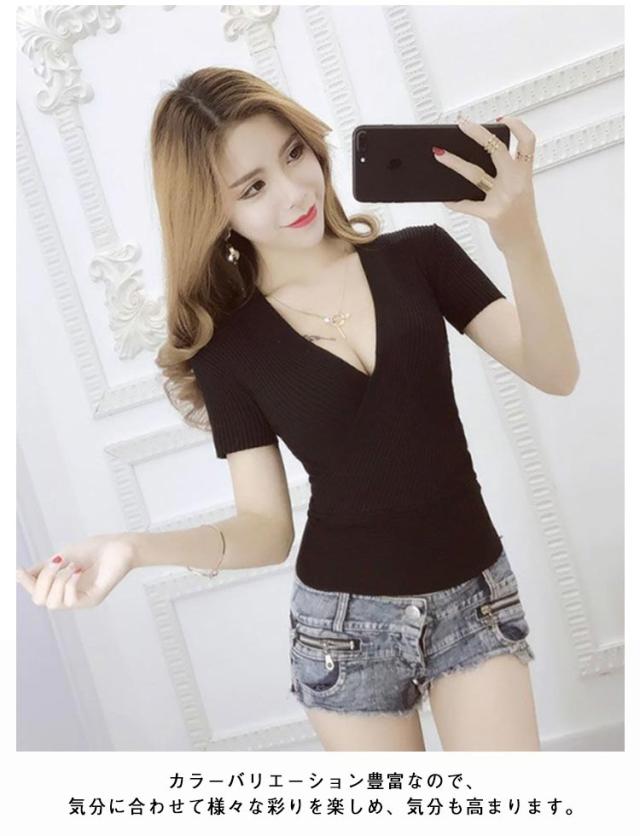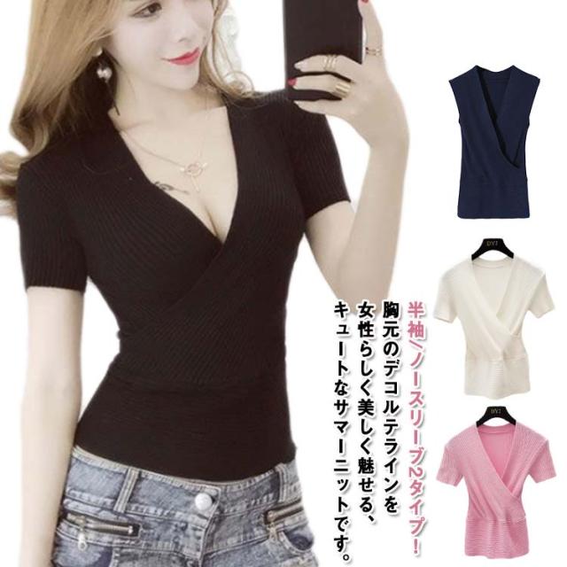 春 深vネック タンクトップ 半袖 ノースリブ セーター vネック ショート丈 ひんやり ニットTシャツ 薄手 夏 レディース セクシー 接触冷感 着痩せ 深vネック 胸元 セクシー きれいめ 細見え 無地 タイト インナー S M L XL