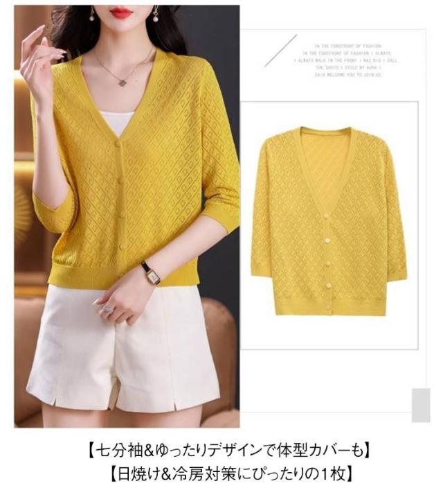 【さらっと涼しい】アイスシルク ニットカーディガン 七分袖 サマーカーディガン 薄手 アイスシルクカーディガン 薄手カーデ 夏用 羽織り 日焼け対策 冷房対策 7色展開 送料無料