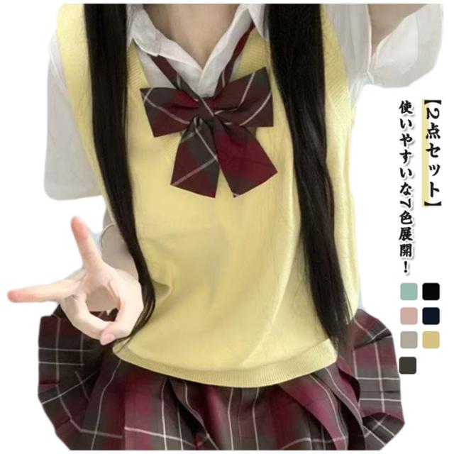 ベスト スクールベスト スクール 男女兼用 2点セット 春 無地 学生 ニットベスト 制服 プルオーバー 夏用 Vネック ノースリーブ JK 冬 通学 通勤 学生服 スクール 秋 スクールセーター レディース 高校 中学 JC ハロウイン クリスマス