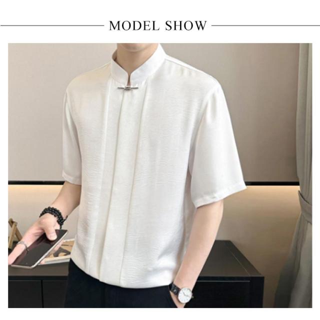 メンズ スーツ襟 スリム 開襟 おしゃれ シャツ 涼しい 開襟シャツ ビジネス 夏 ゆったり 無地シャツ 五分丈 カジュアルシャツ トップス 冷感シャツ 大きいサイズ 薄手 オーバーサイズ 半袖シャツ おしゃれ シャツ アウター 夏 S M L XL 2XL 3XL 4XL